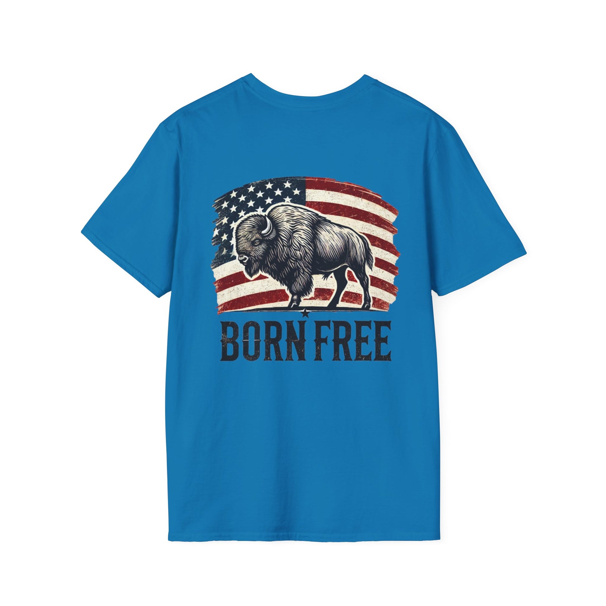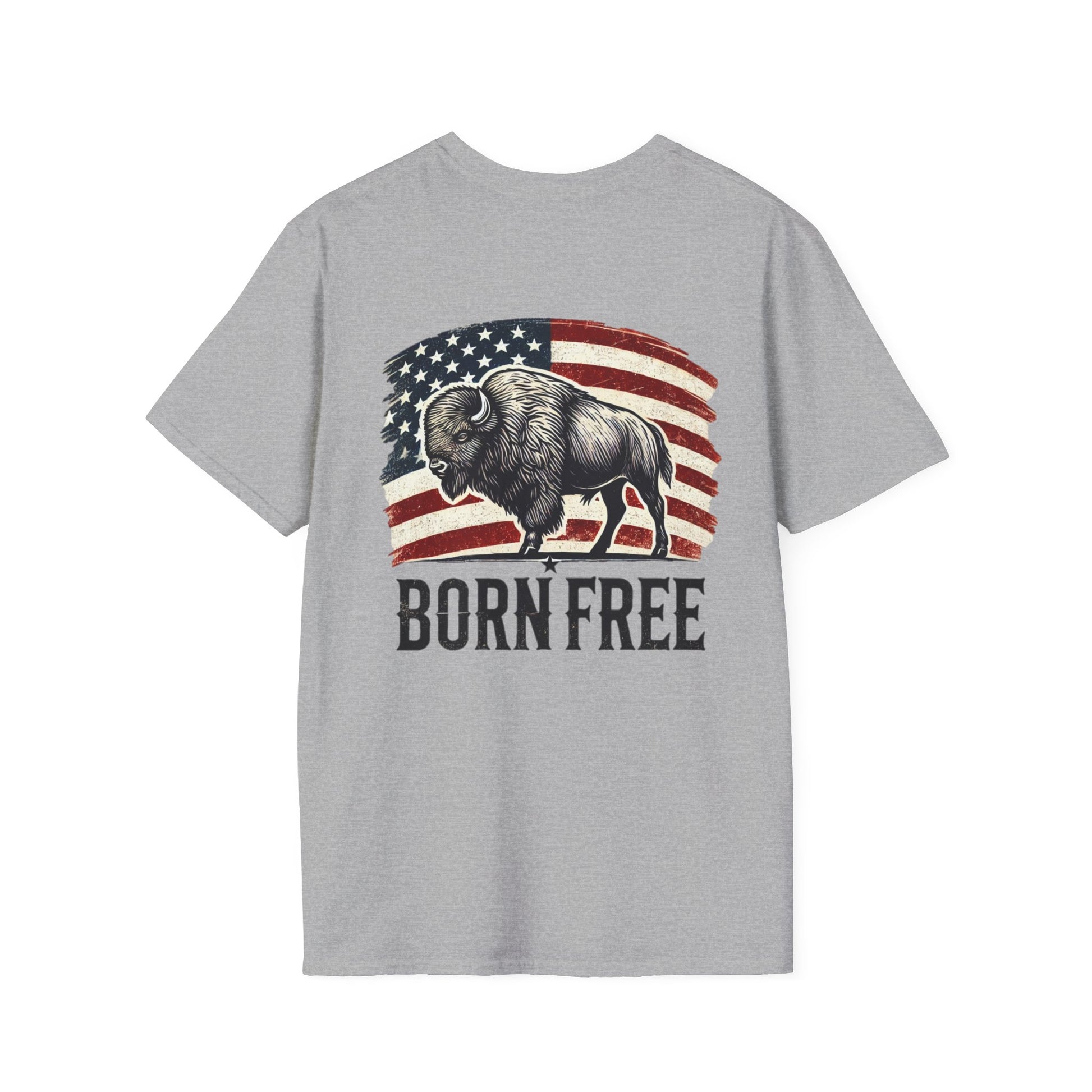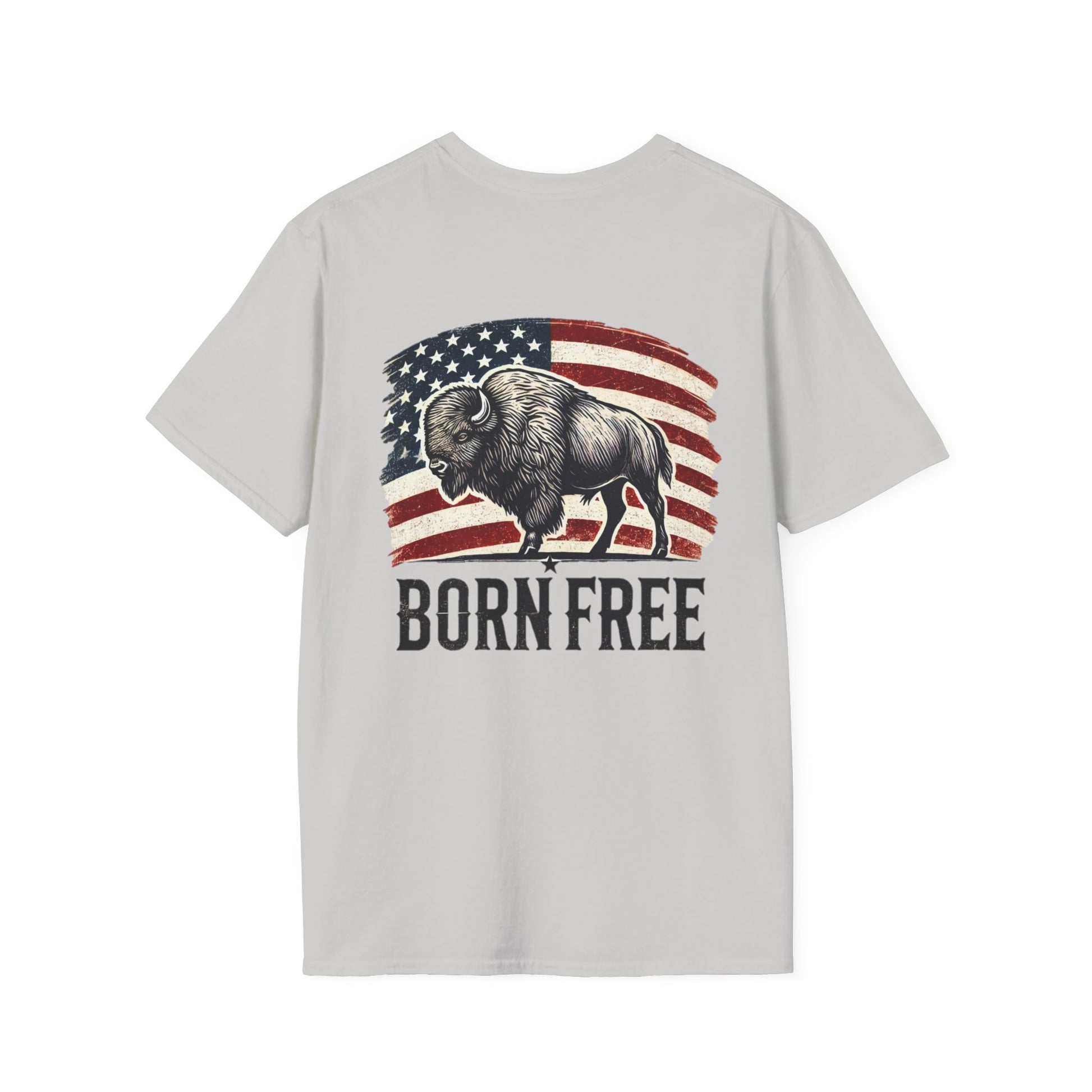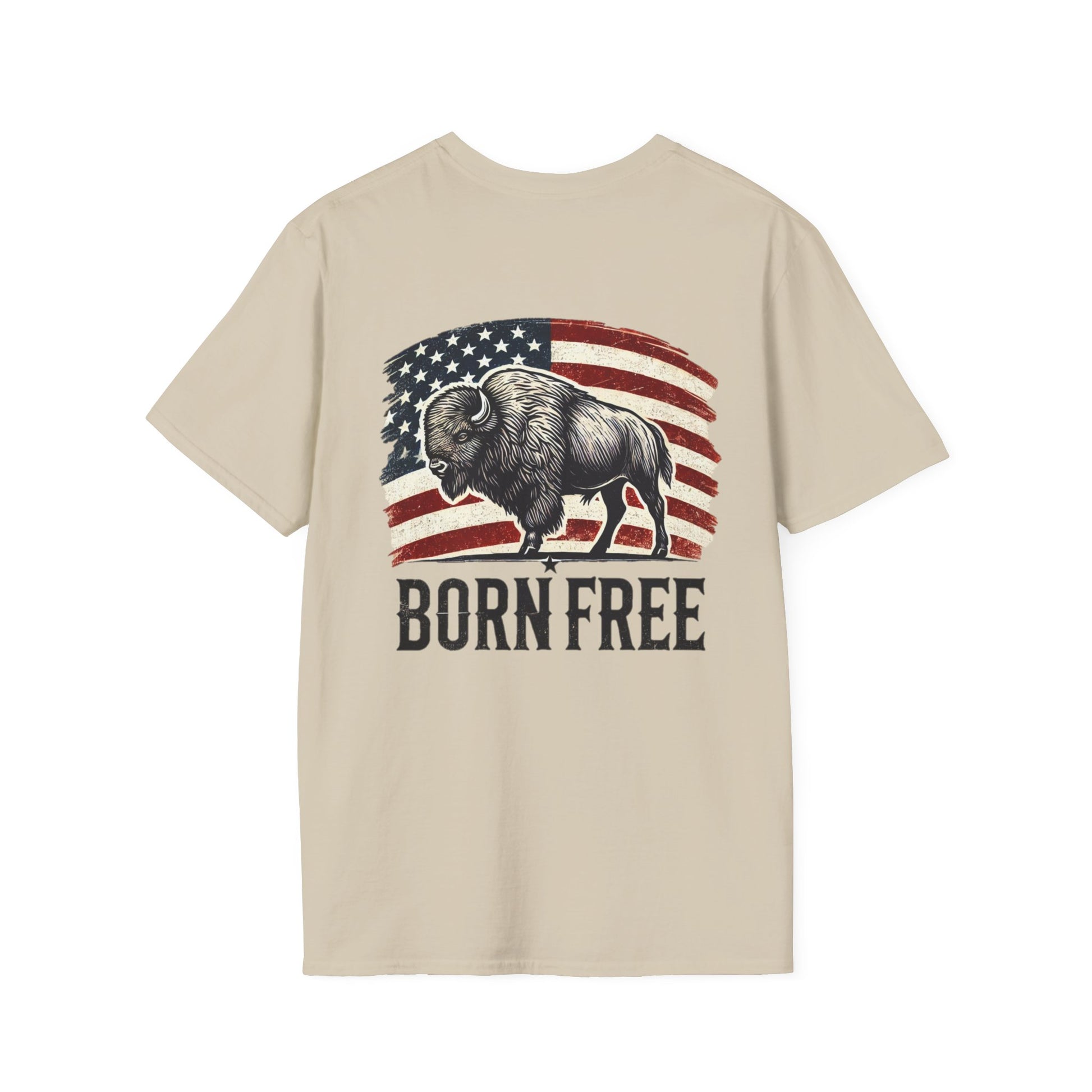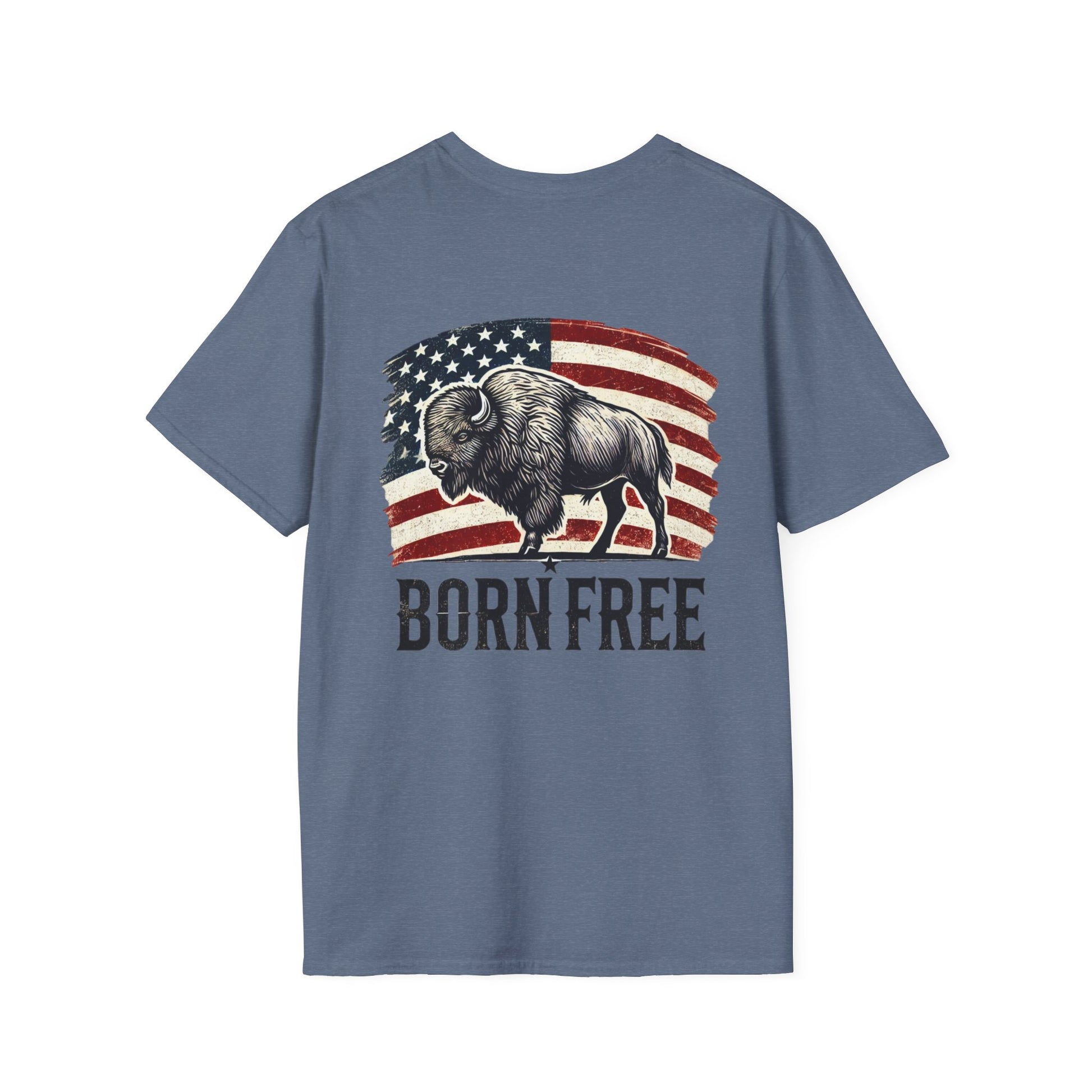 Roam wild, live proud. The Born Free tee brings together two unstoppable American icons—the mighty bison and the stars and stripes. With a vintage-style distressed flag backdrop and a bold buffalo front and center, this design is pure grit, freedom, and heritage.