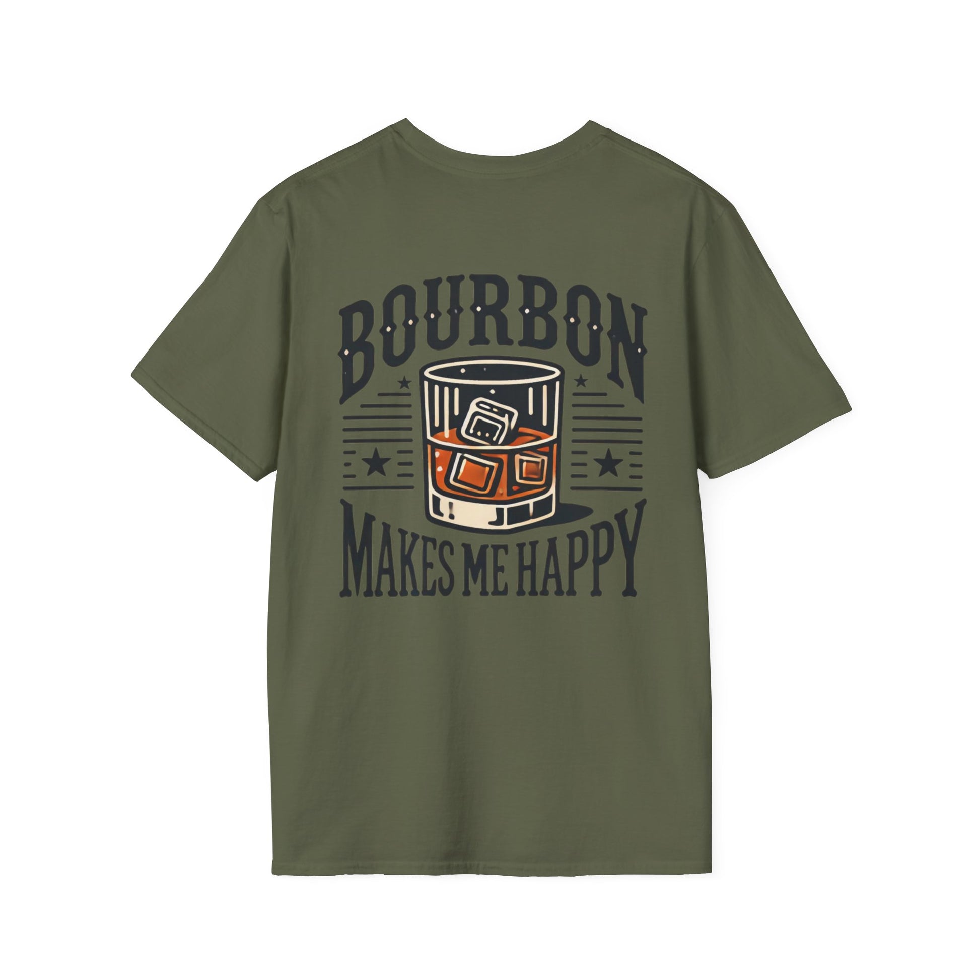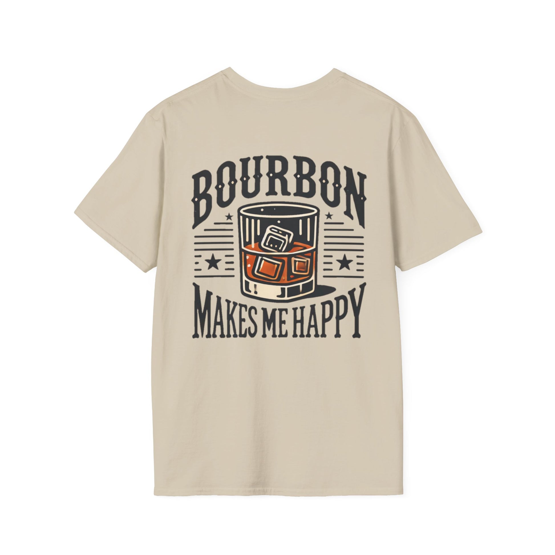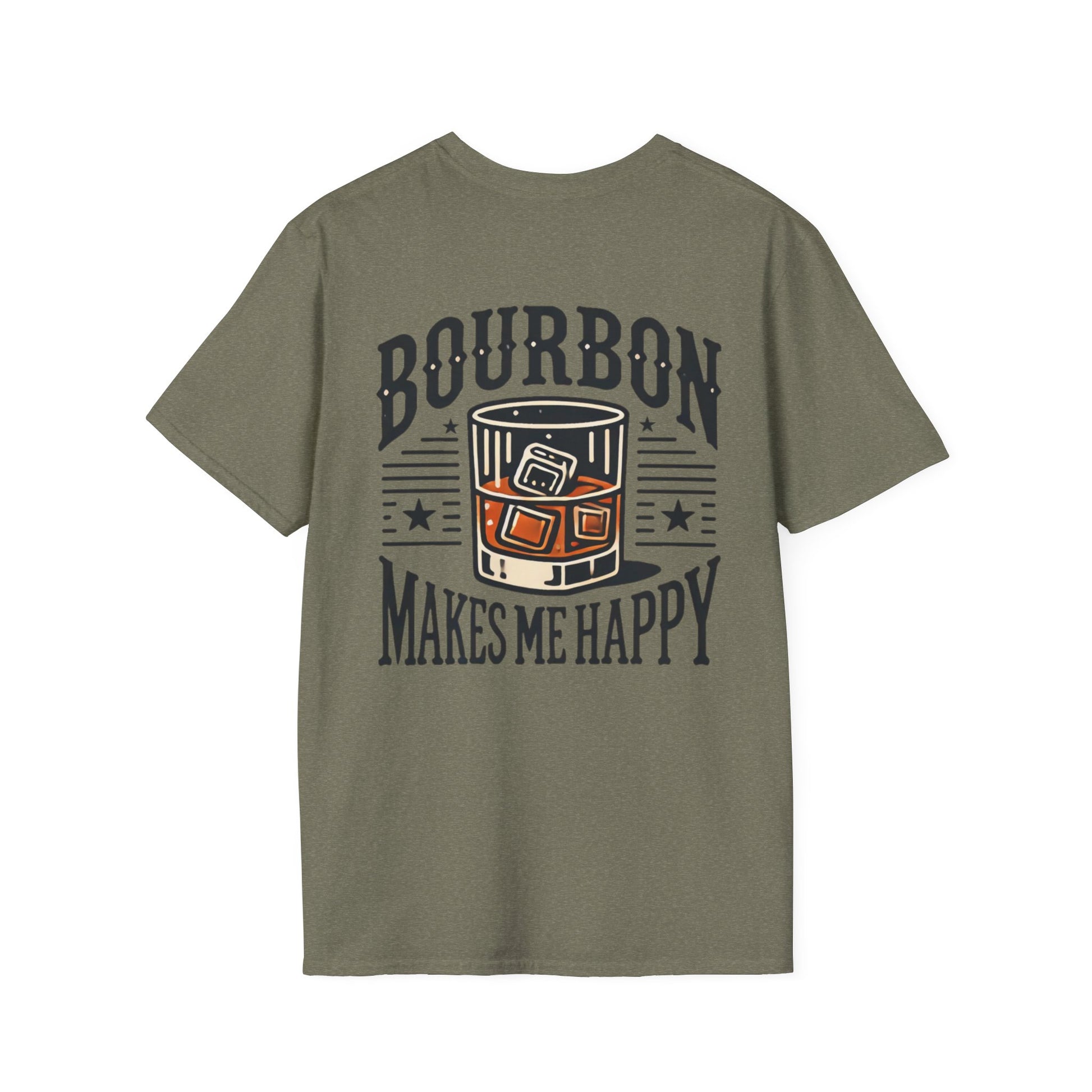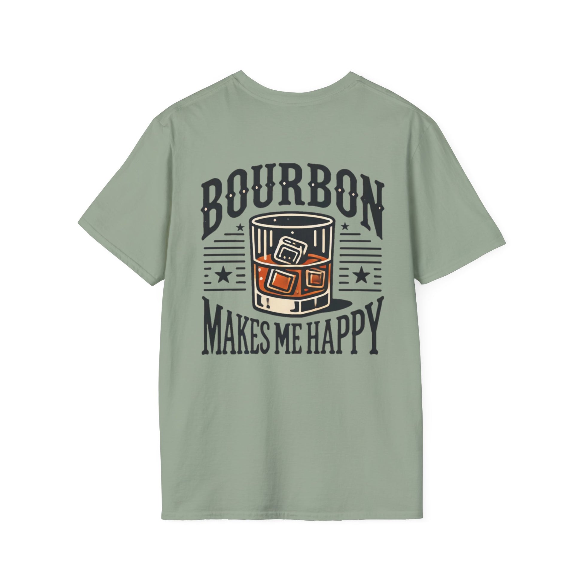 Smooth. Strong. Satisfying. Just like your favorite pour, the Bourbon Makes Me Happy tee keeps it simple and bold. Featuring a stylized rocks glass filled with amber gold and ice, this design pops on a sage green backdrop with vintage-inspired lettering and a touch of rustic charm.