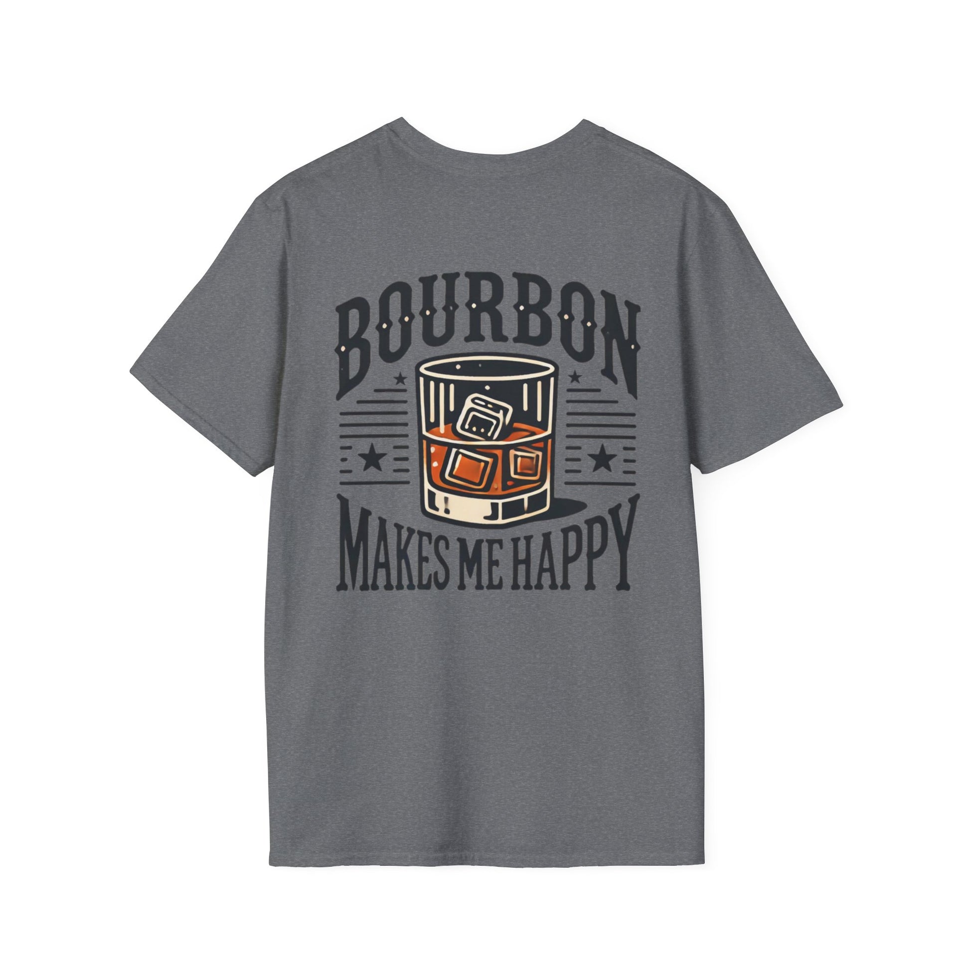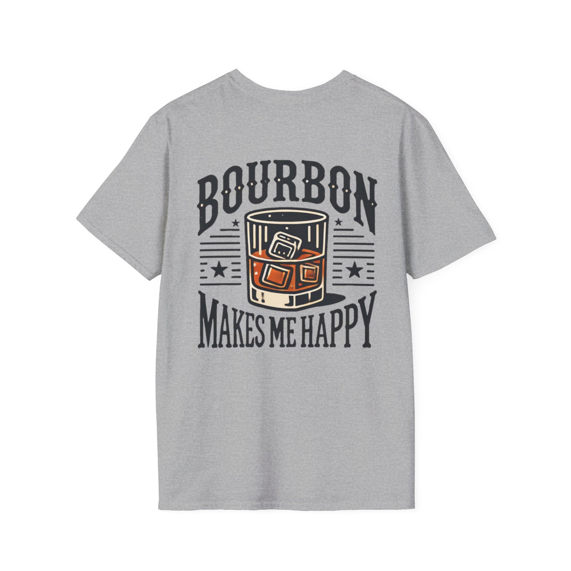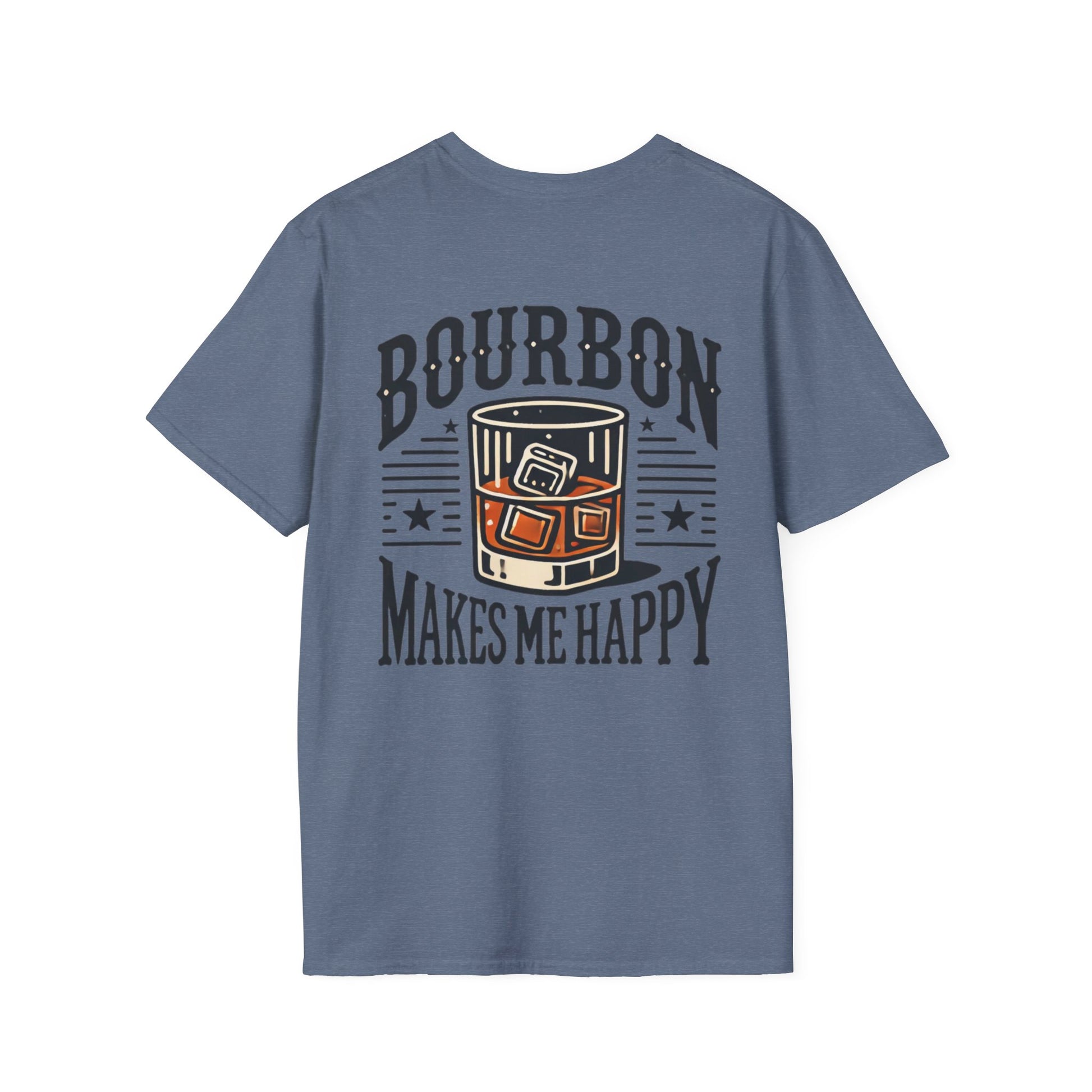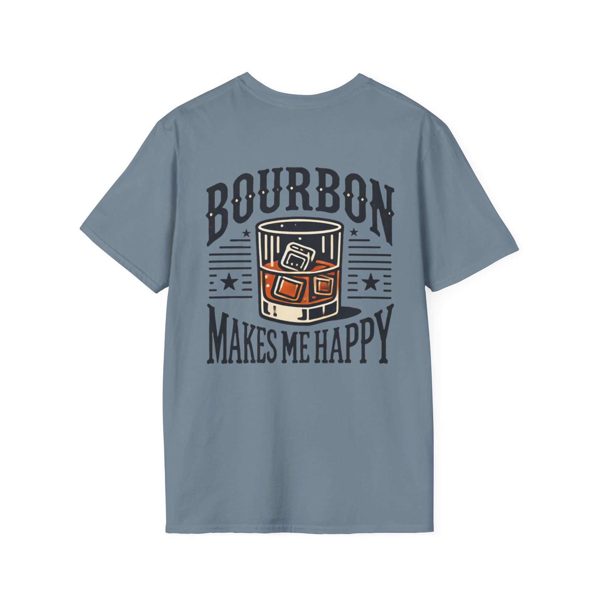 Smooth. Strong. Satisfying. Just like your favorite pour, the Bourbon Makes Me Happy tee keeps it simple and bold. Featuring a stylized rocks glass filled with amber gold and ice, this design pops on a sage green backdrop with vintage-inspired lettering and a touch of rustic charm.