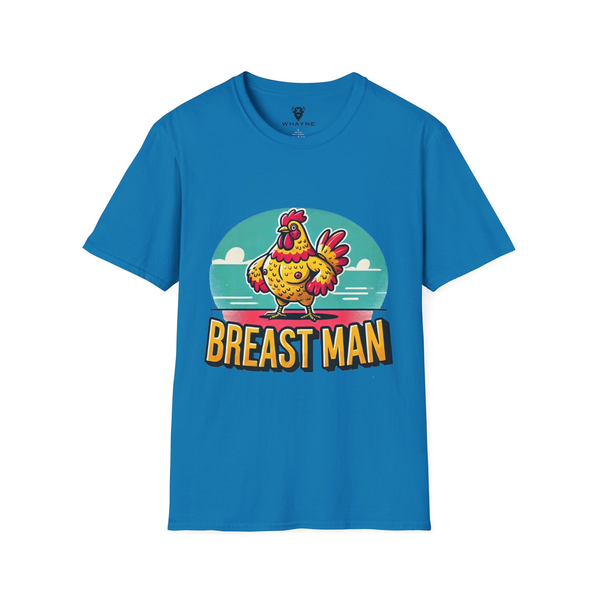 Featuring a buff, confident chicken against a retro beachy backdrop, the “Breast Man” tee is a hilarious homage to your favorite cut of meat. Bold, colorful, and unapologetically proud, it’s perfect for cookouts, tailgates, or just cluckin’ around.