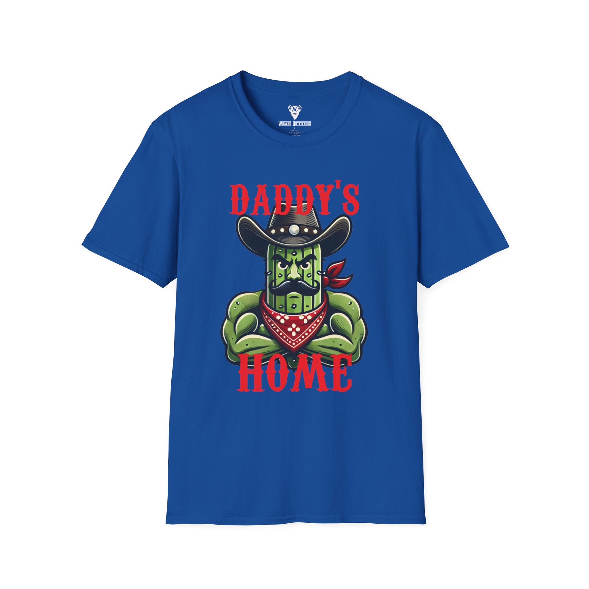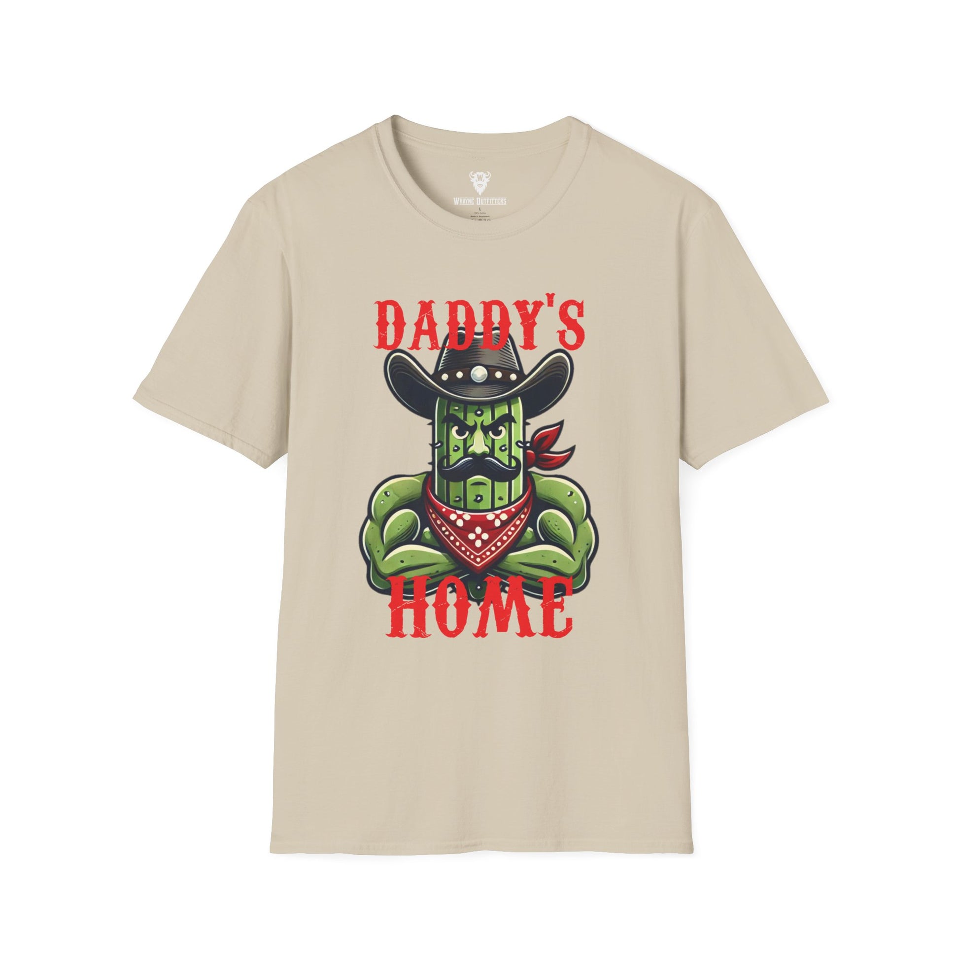 Big attitude, bigger biceps, and even bigger cactus energy. This tee features a jacked cartoon cactus in full cowboy getup—hat, bandana, and an unbothered stare that says it all. Paired with the loud-and-proud “Daddy’s Home” message, this one brings humor and swagger together in one unforgettable look. Made for the ones who walk in like they own the saloon.