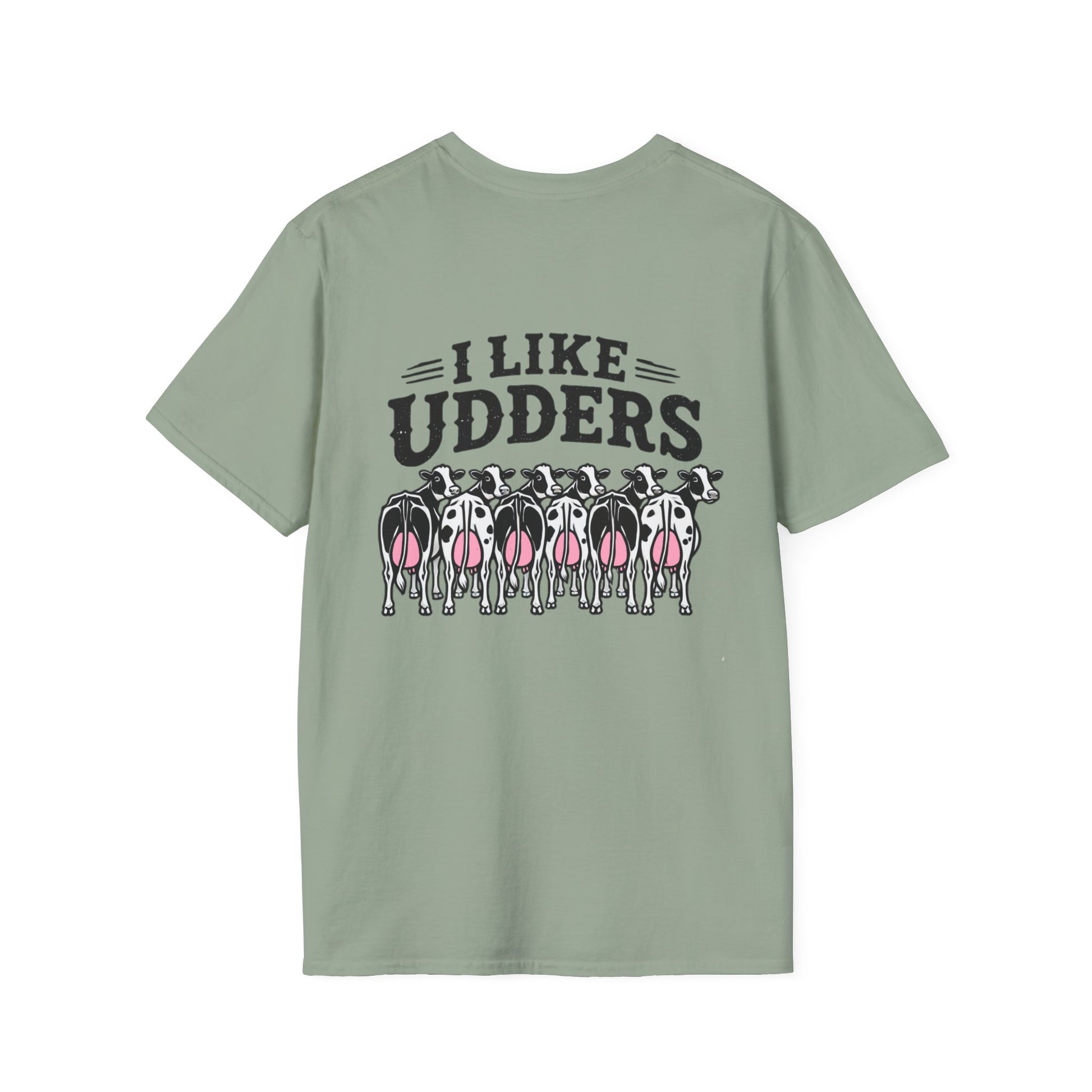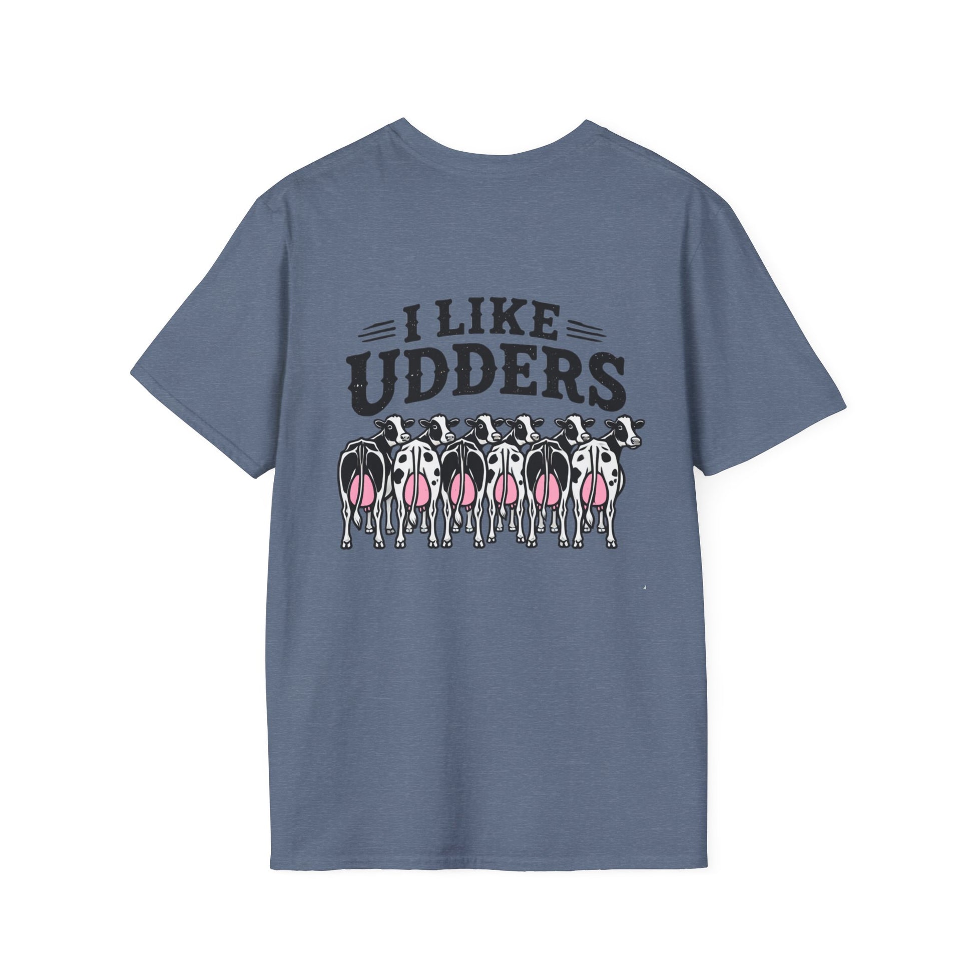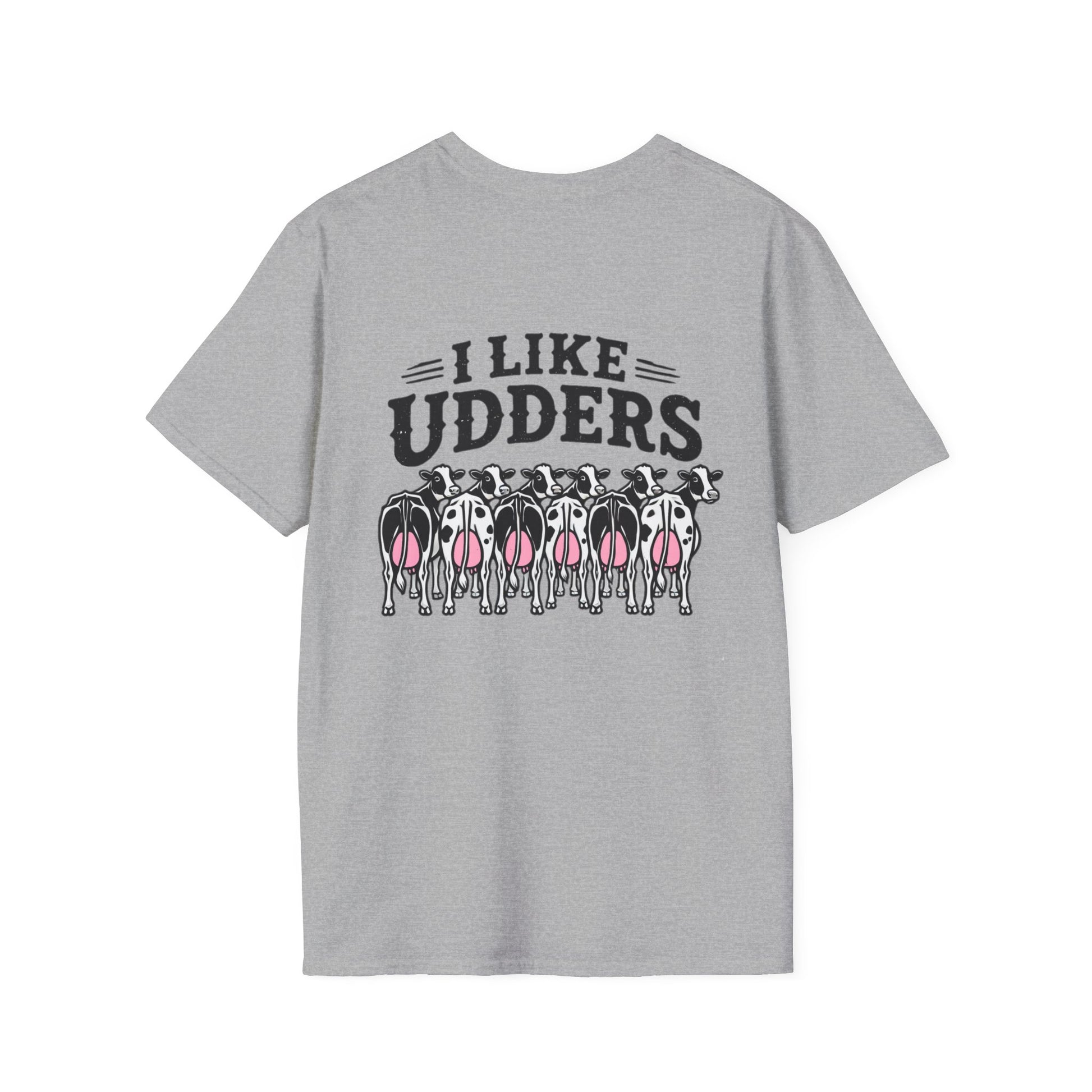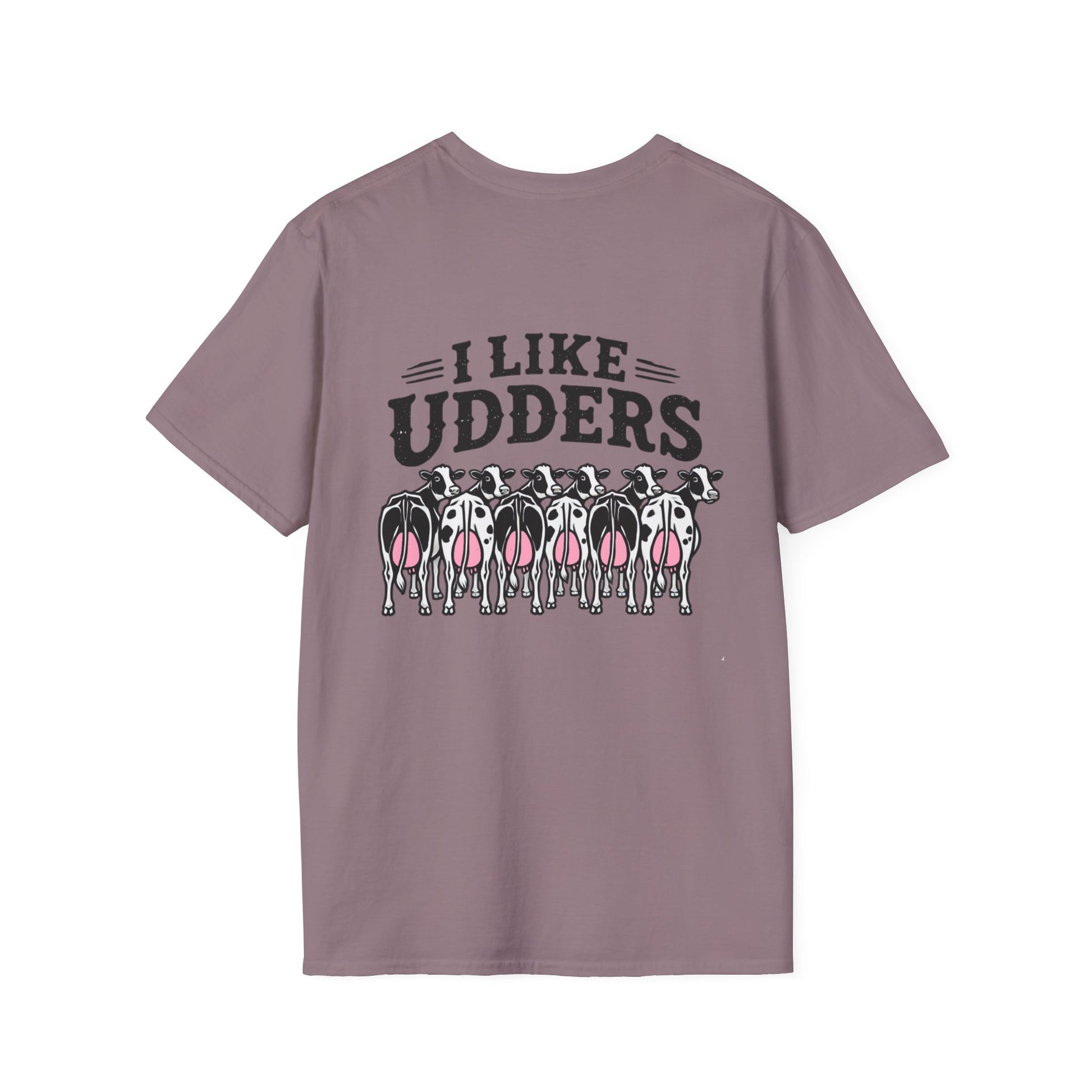 Moo’ve over basic tees—this one brings the laughs. The I Like Udders shirt delivers a playful twist on farm humor with a lineup of Holstein cows and their unmistakable pink udders front and center. Topped off with bold vintage-style lettering, this tee is for folks who appreciate good milk and even better punchlines.
