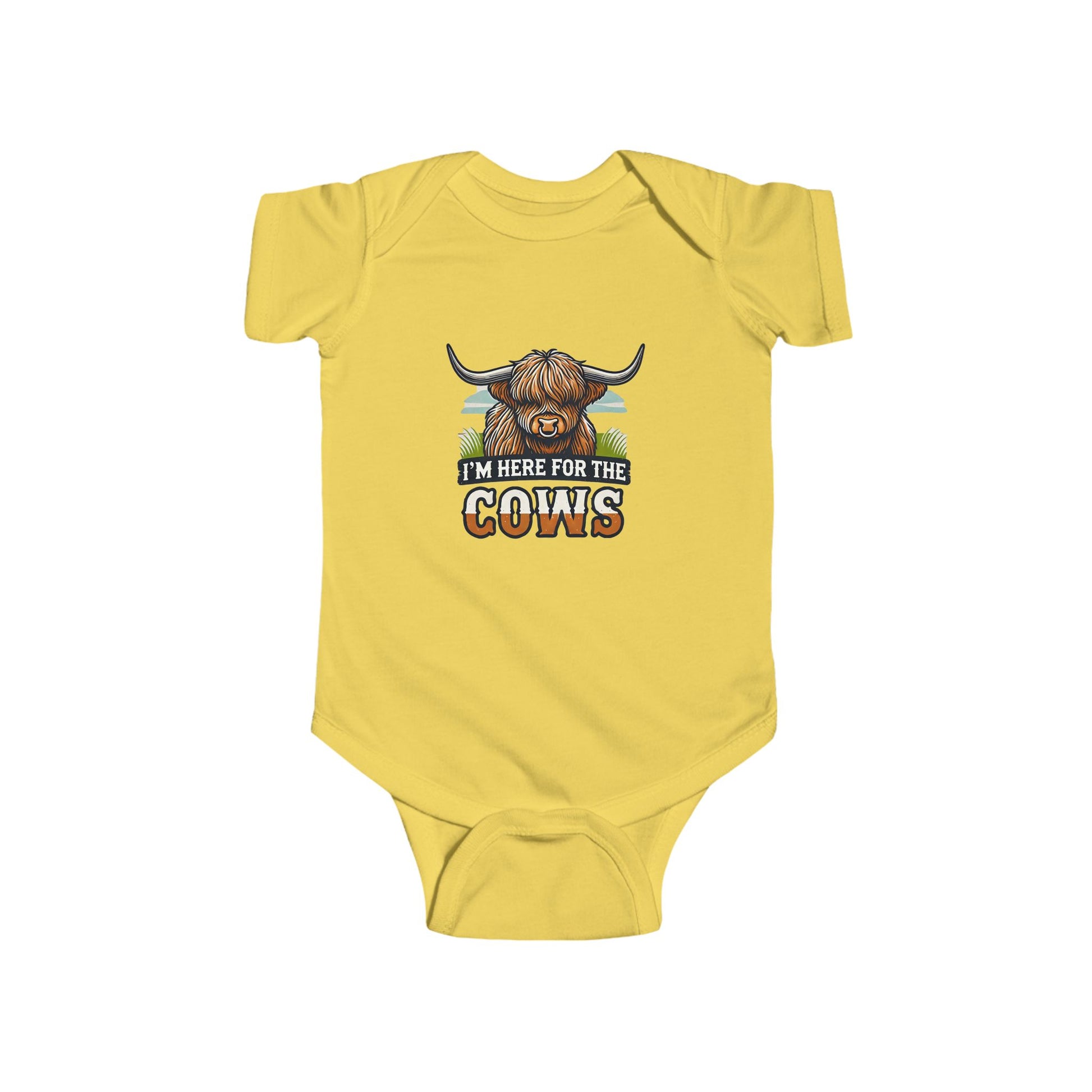 For the little one who already knows what’s important in life—I’m Here for the Cows is the perfect fit! Featuring a shaggy Highland cow graphic and bold western text, this baby bodysuit is as cute as it is country. It’s the ideal look for fair days, farm visits, or just kickin’ back with the herd.