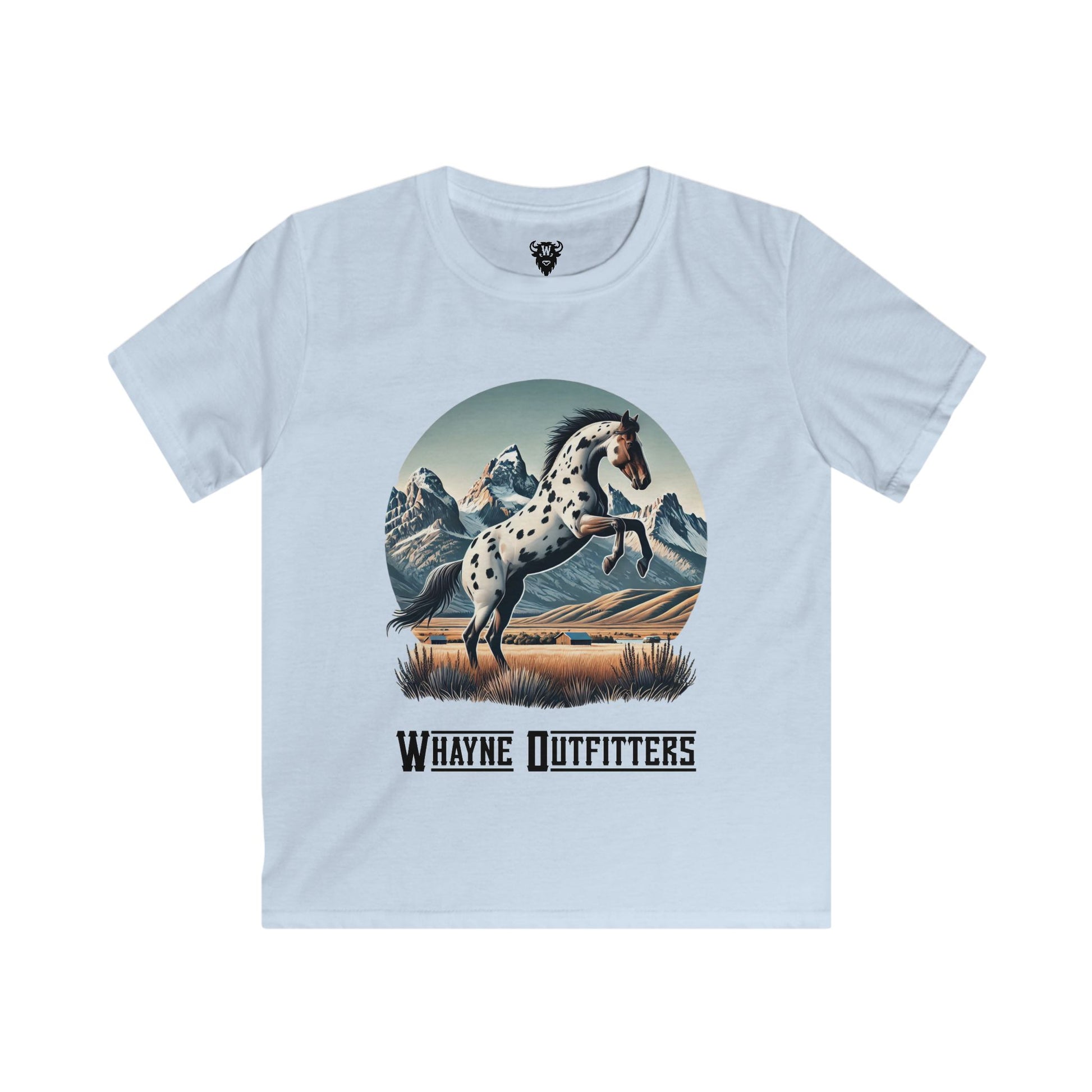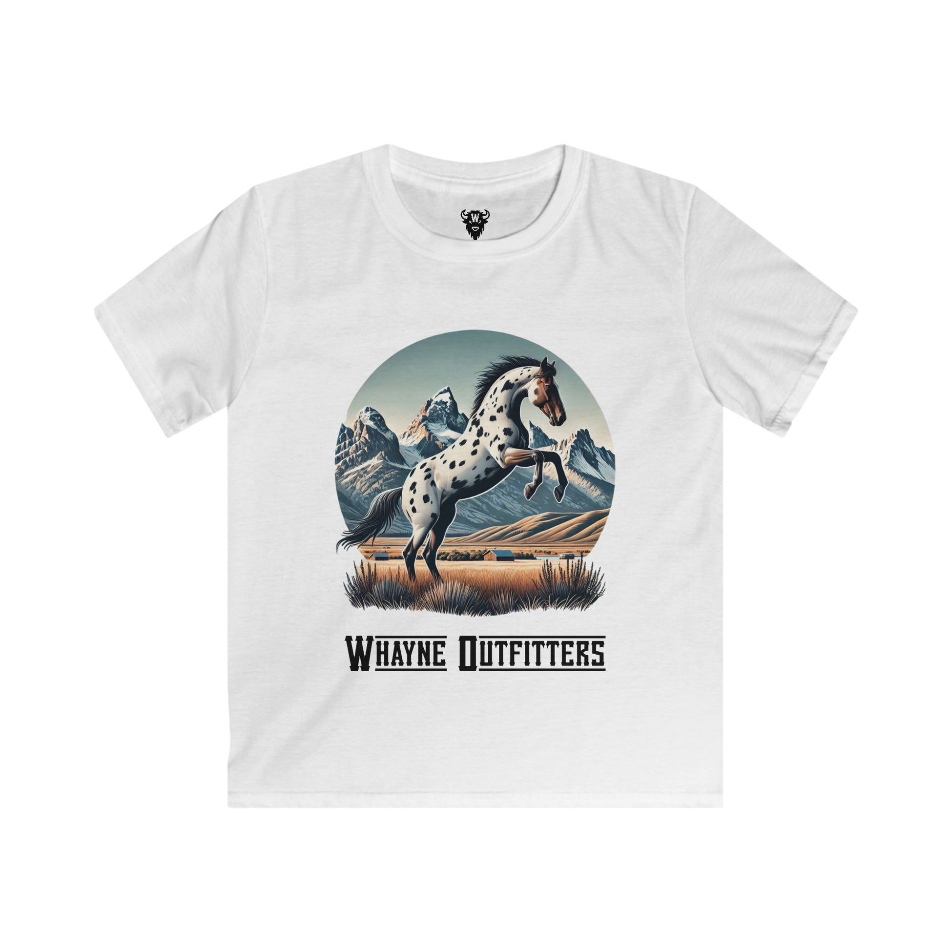 Wild hearts start young. This adventurous design features a rearing Appaloosa horse against a stunning mountain backdrop, perfect for the kid who’s always on the move. With Whayne Outfitters branding and frontier flair, it’s made for little wranglers with big dreams.