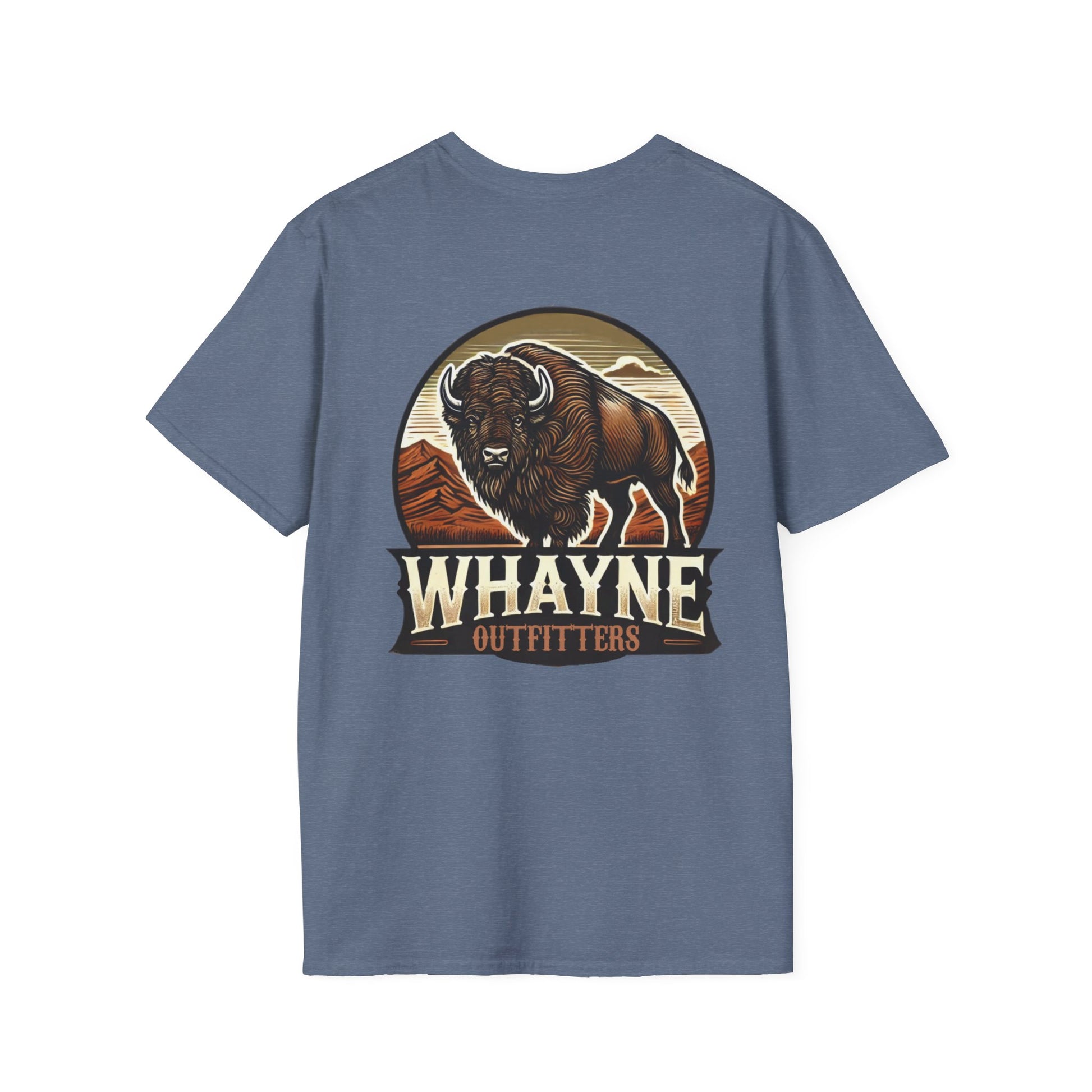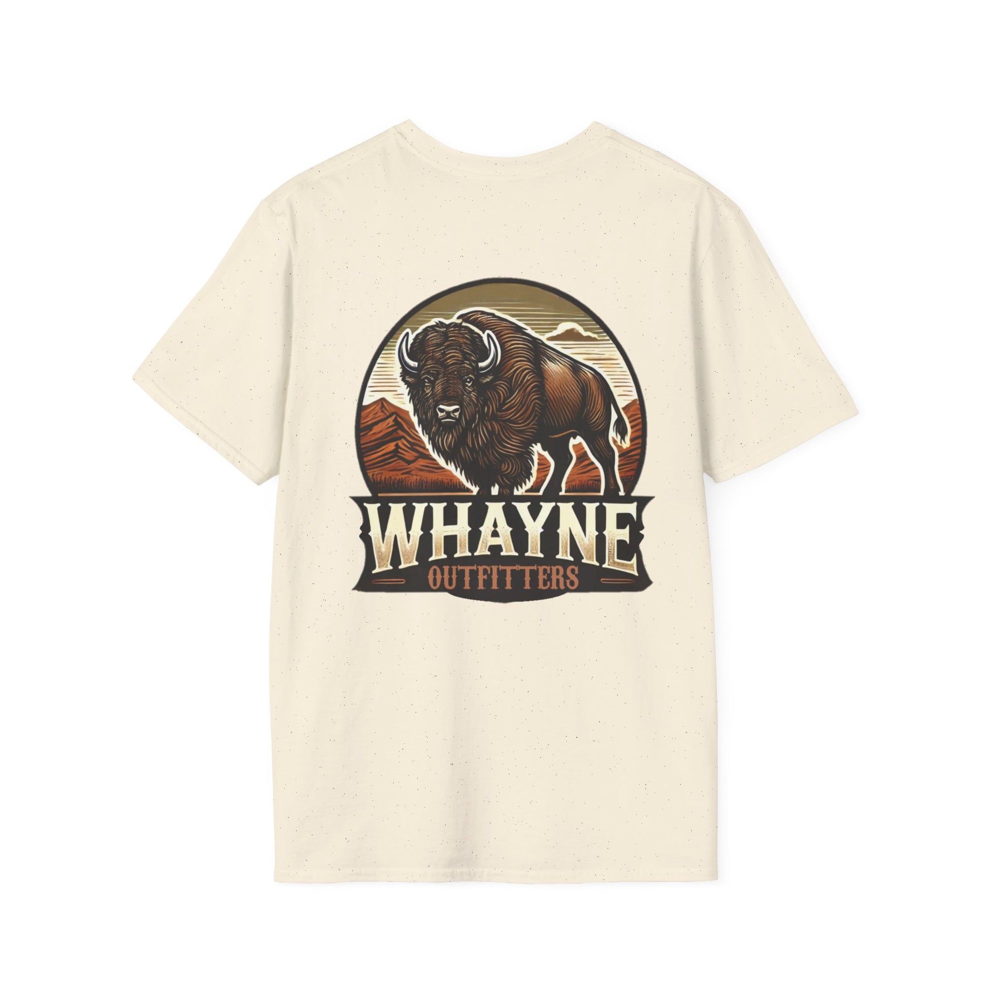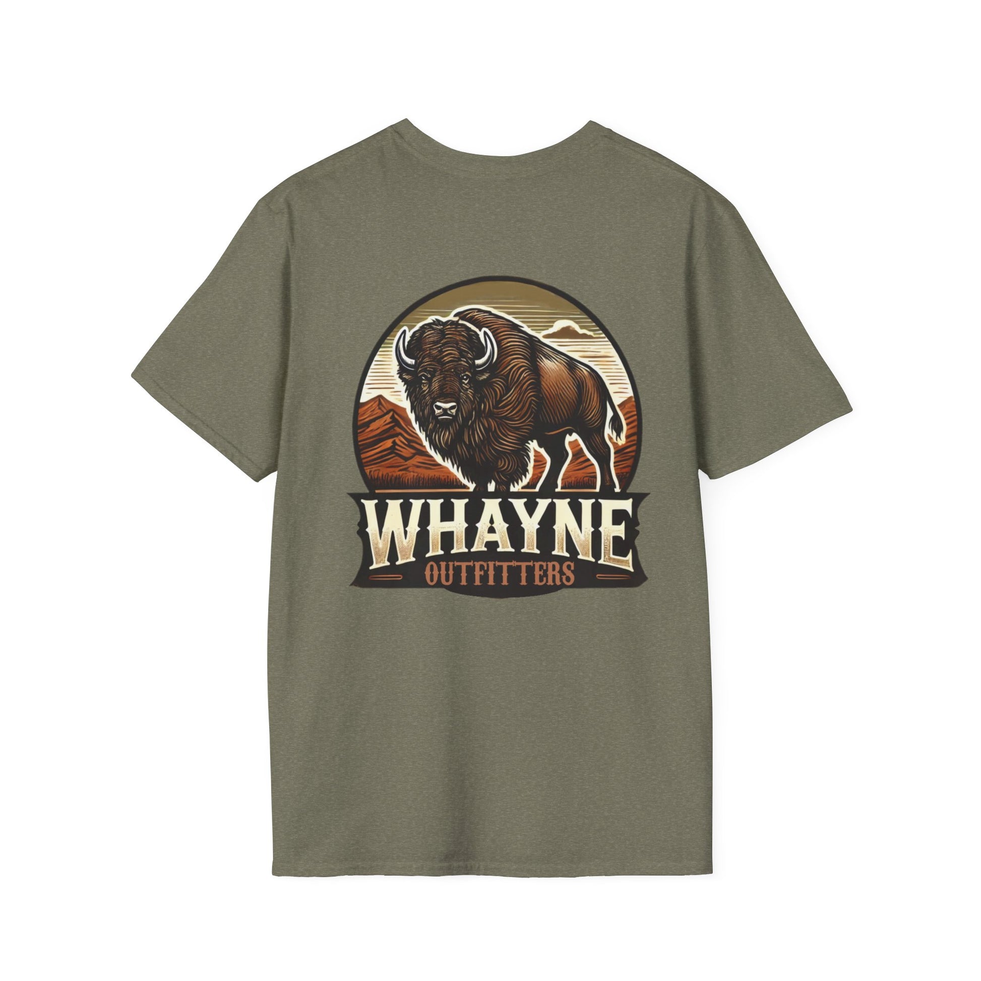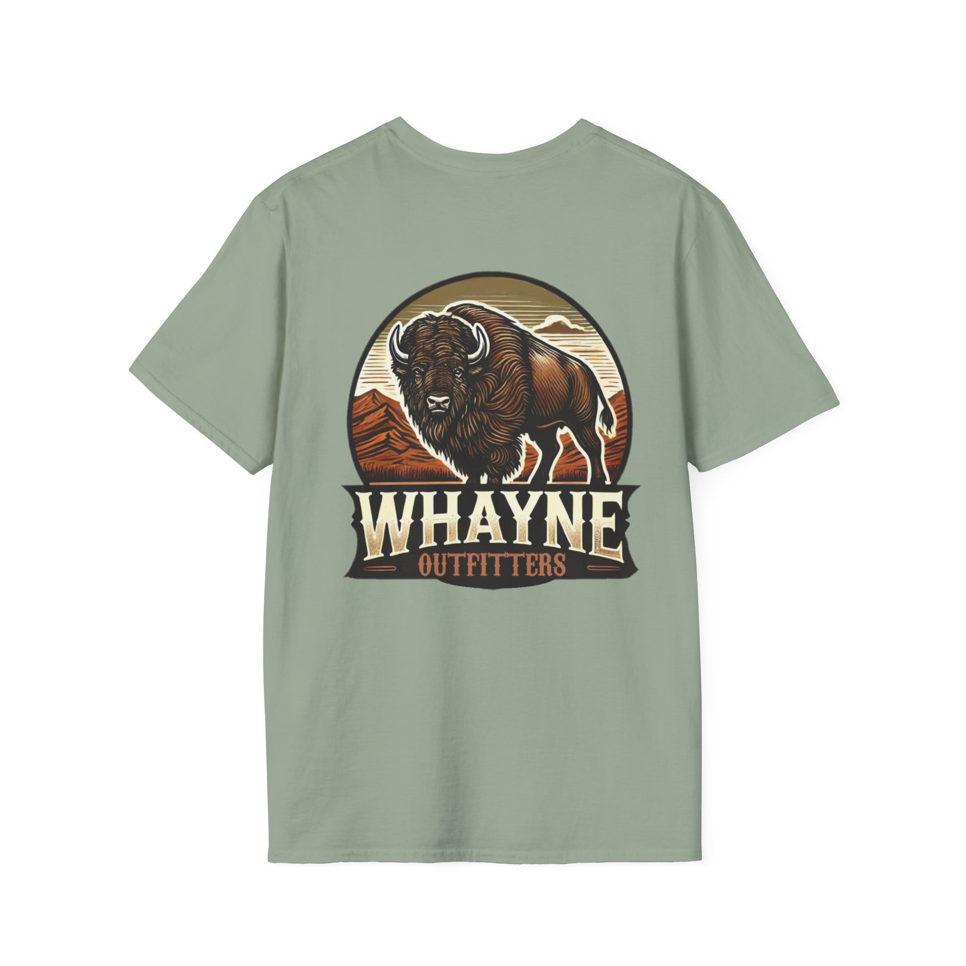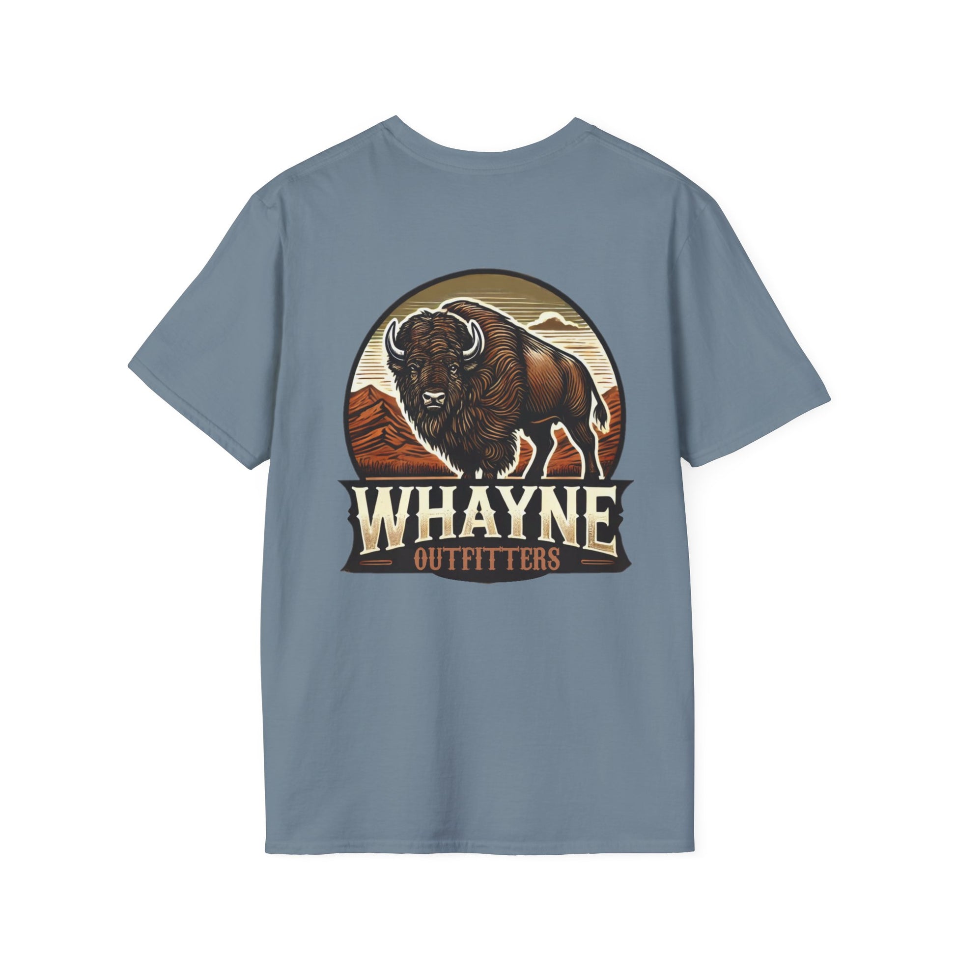 Channel the untamed spirit of the frontier with this bold bison graphic tee. Featuring our signature Whayne Outfitters branding beneath a powerful bison set against a red rock canyon backdrop, this design speaks to resilience, heritage, and life on the open range. Clean lines, earthy tones, and western grit all come together in a timeless look built for those who roam free.