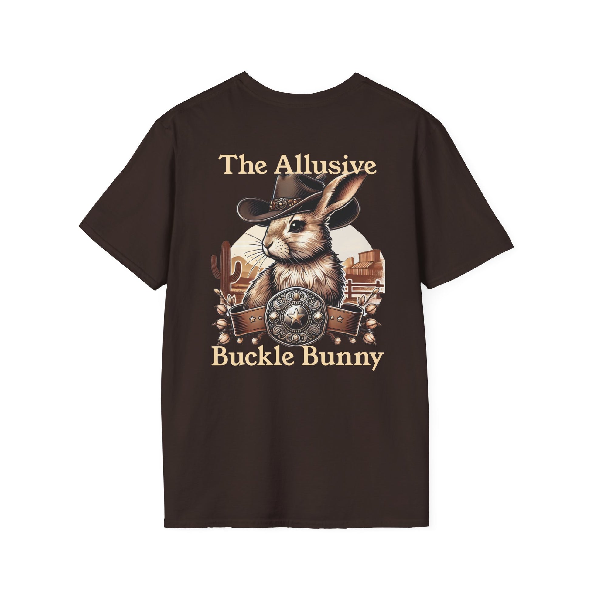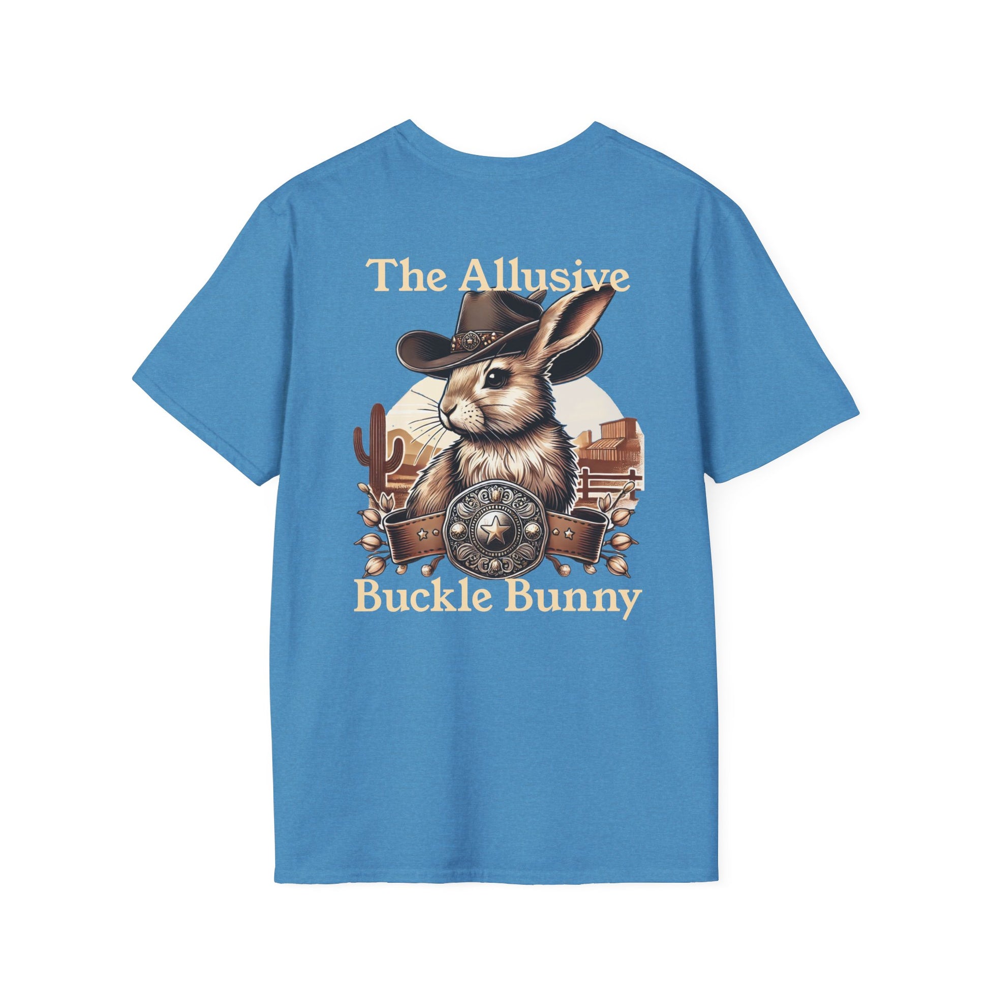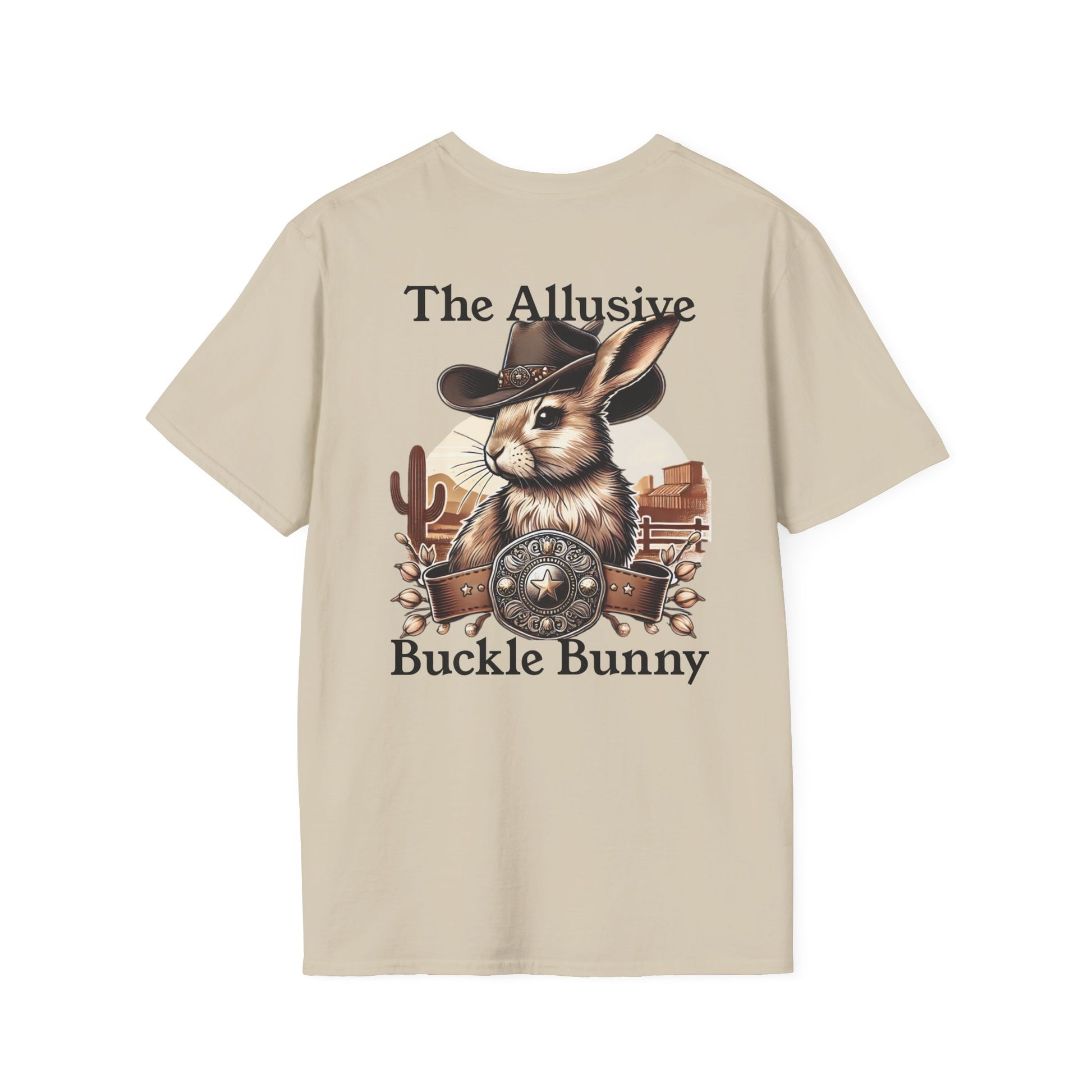 Playful, bold, and a little mysterious—just like the legend herself. The Allusive Buckle Bunny Tee features a clean front with a subtle Whayne Outfitters chest print and a full western-style back graphic starring our iconic cowboy bunny and a statement buckle badge.