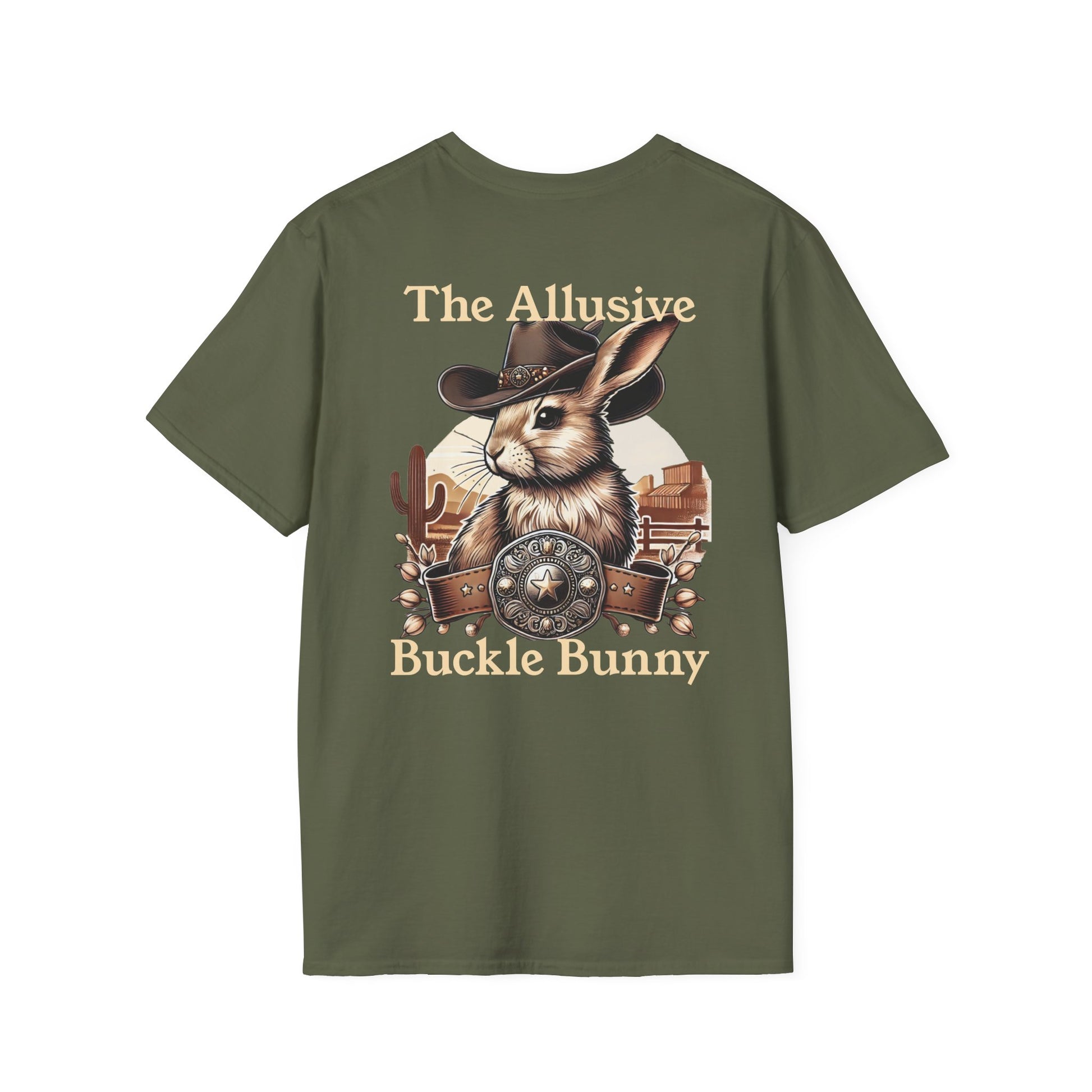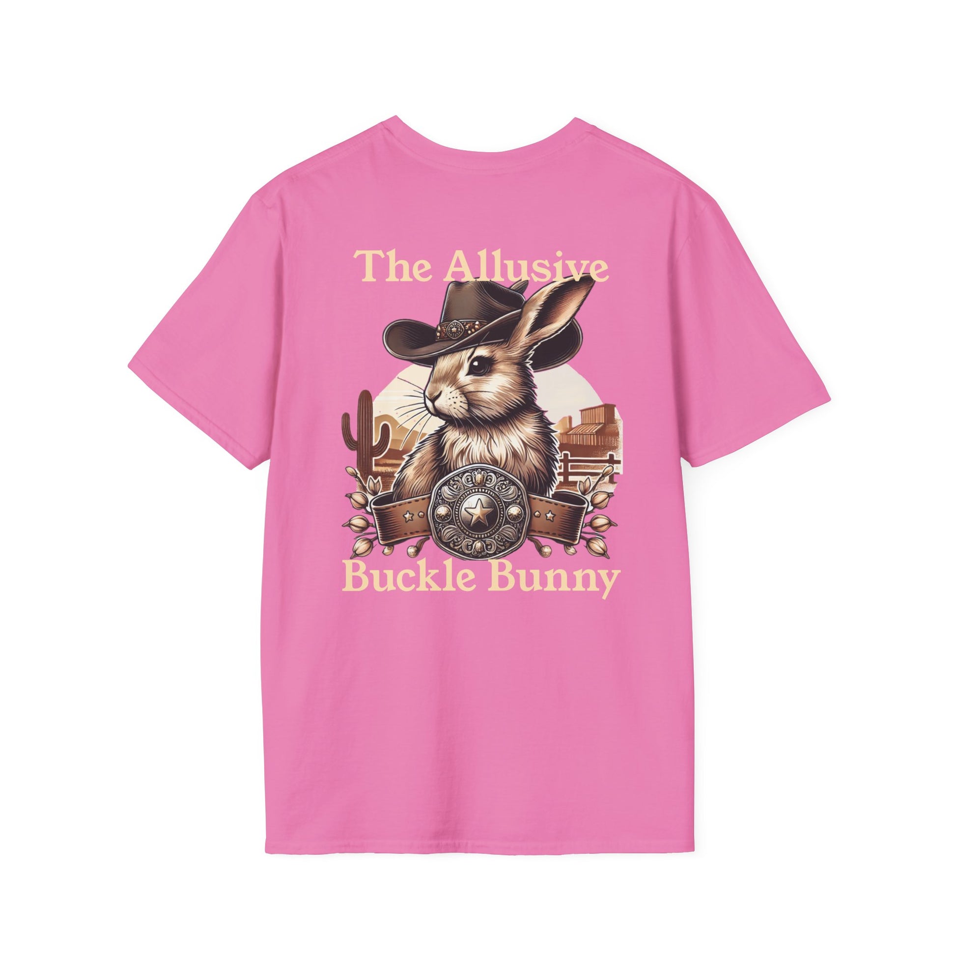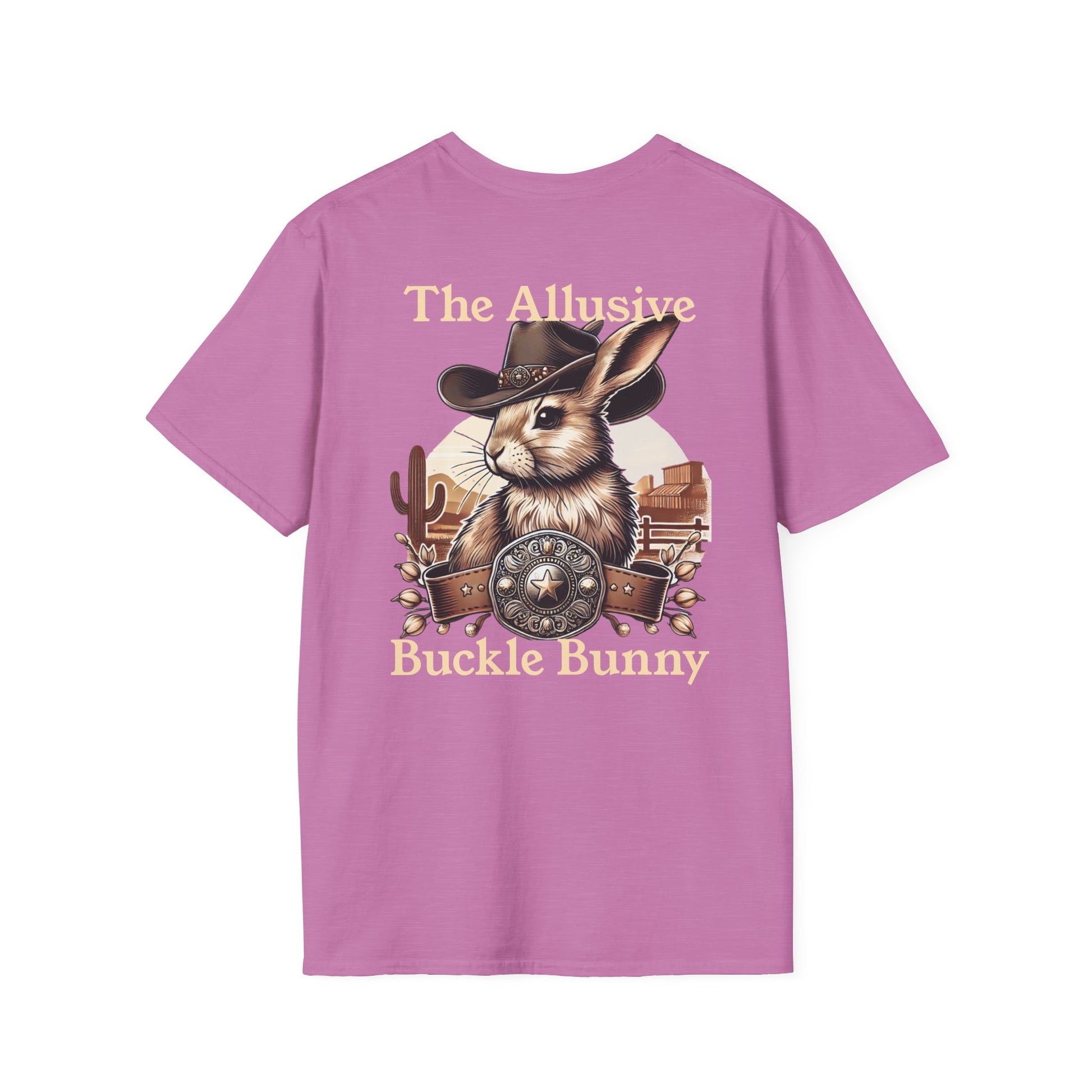 Playful, bold, and a little mysterious—just like the legend herself. The Allusive Buckle Bunny Tee features a clean front with a subtle Whayne Outfitters chest print and a full western-style back graphic starring our iconic cowboy bunny and a statement buckle badge.