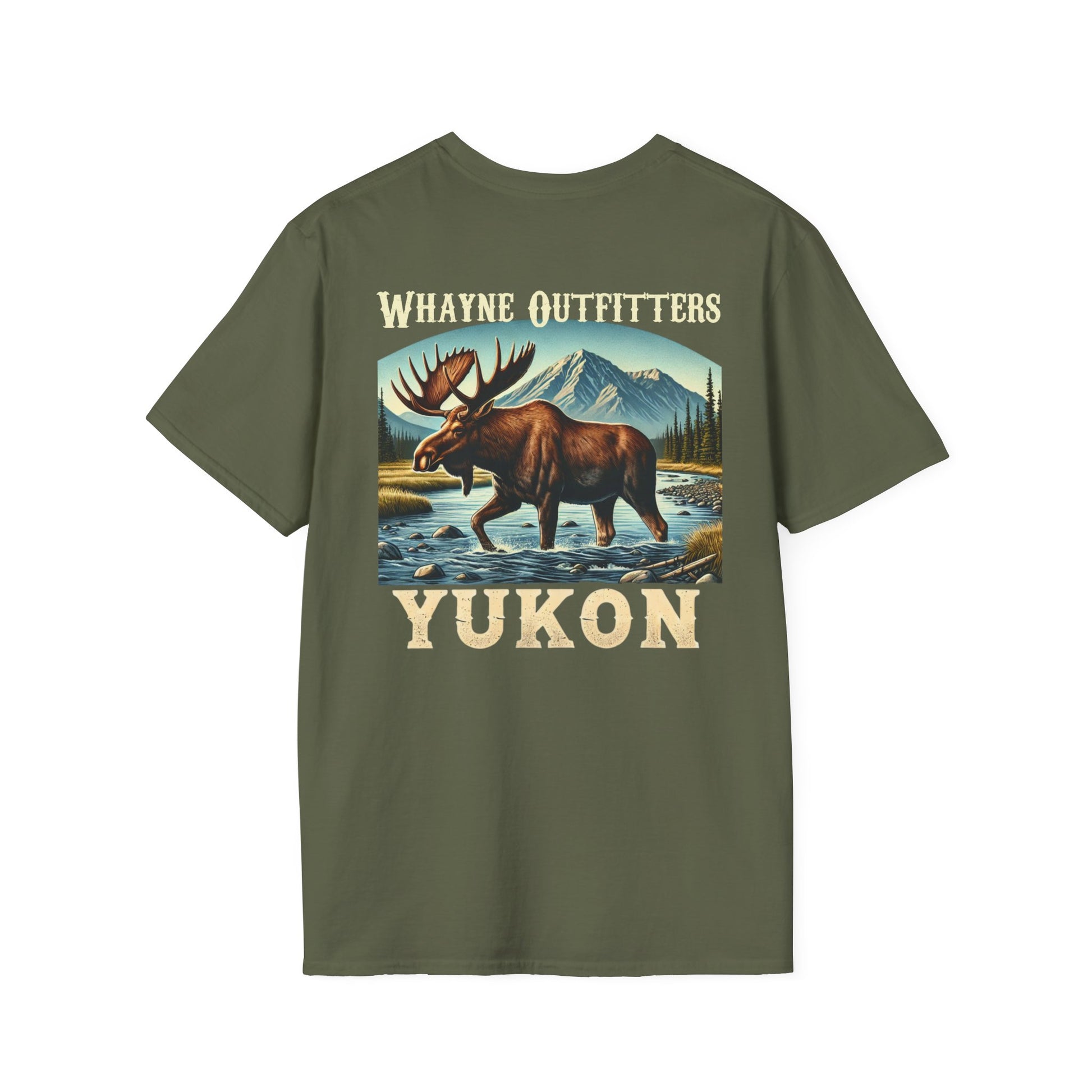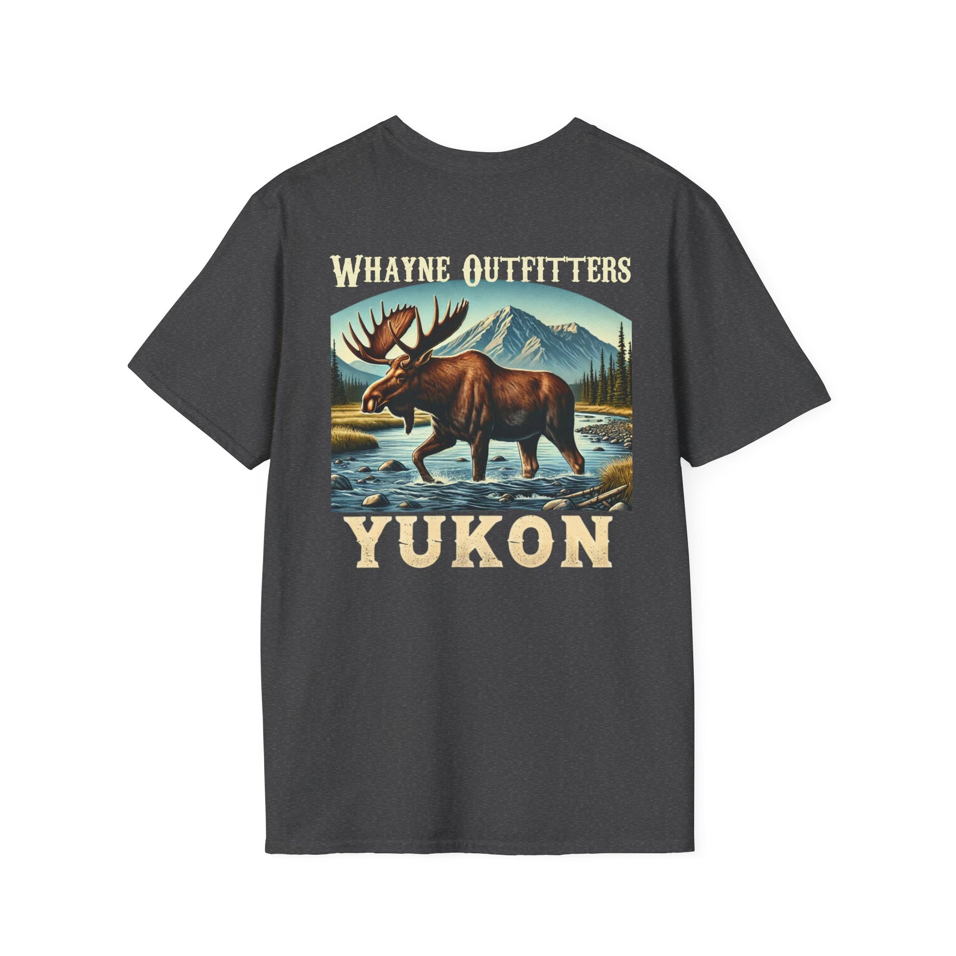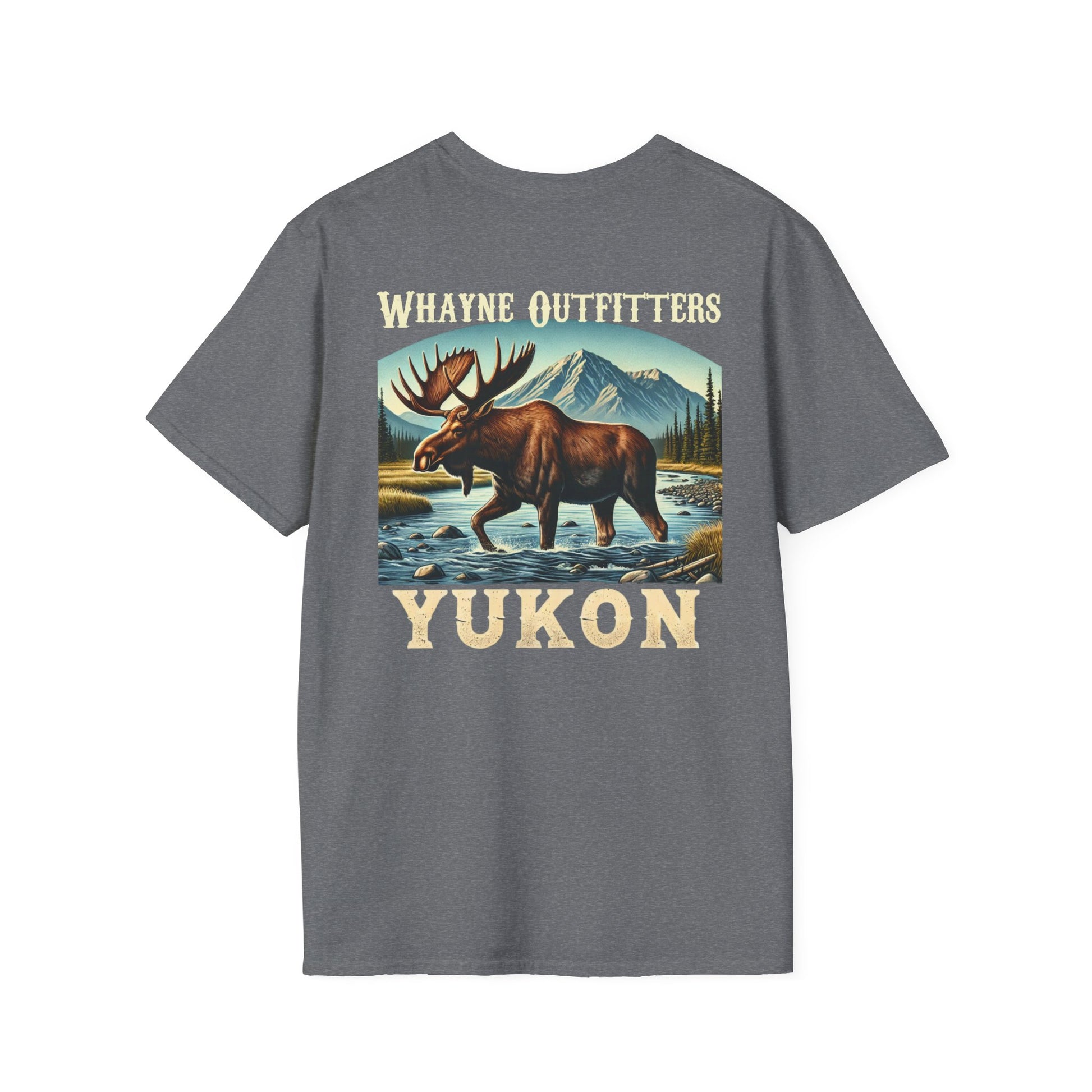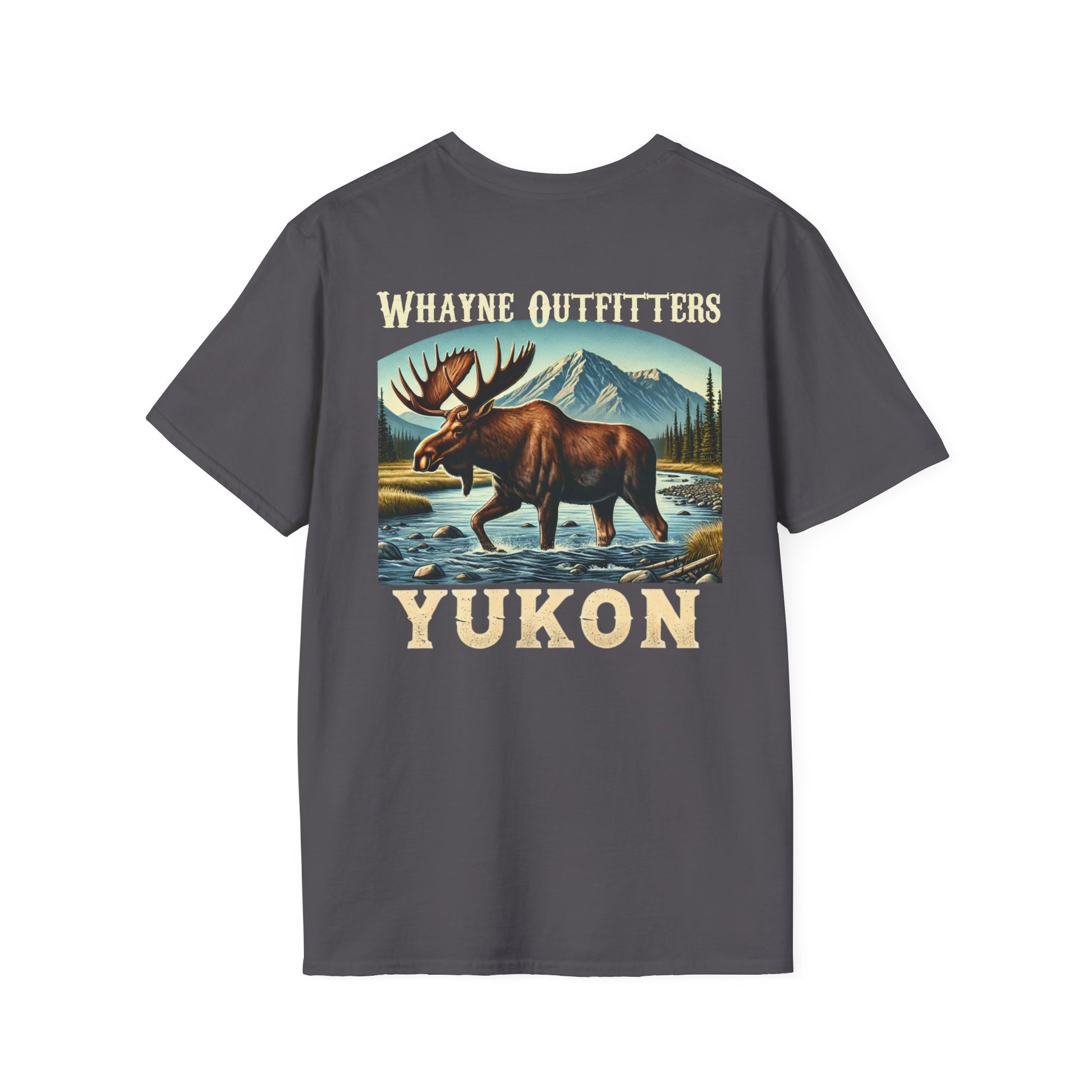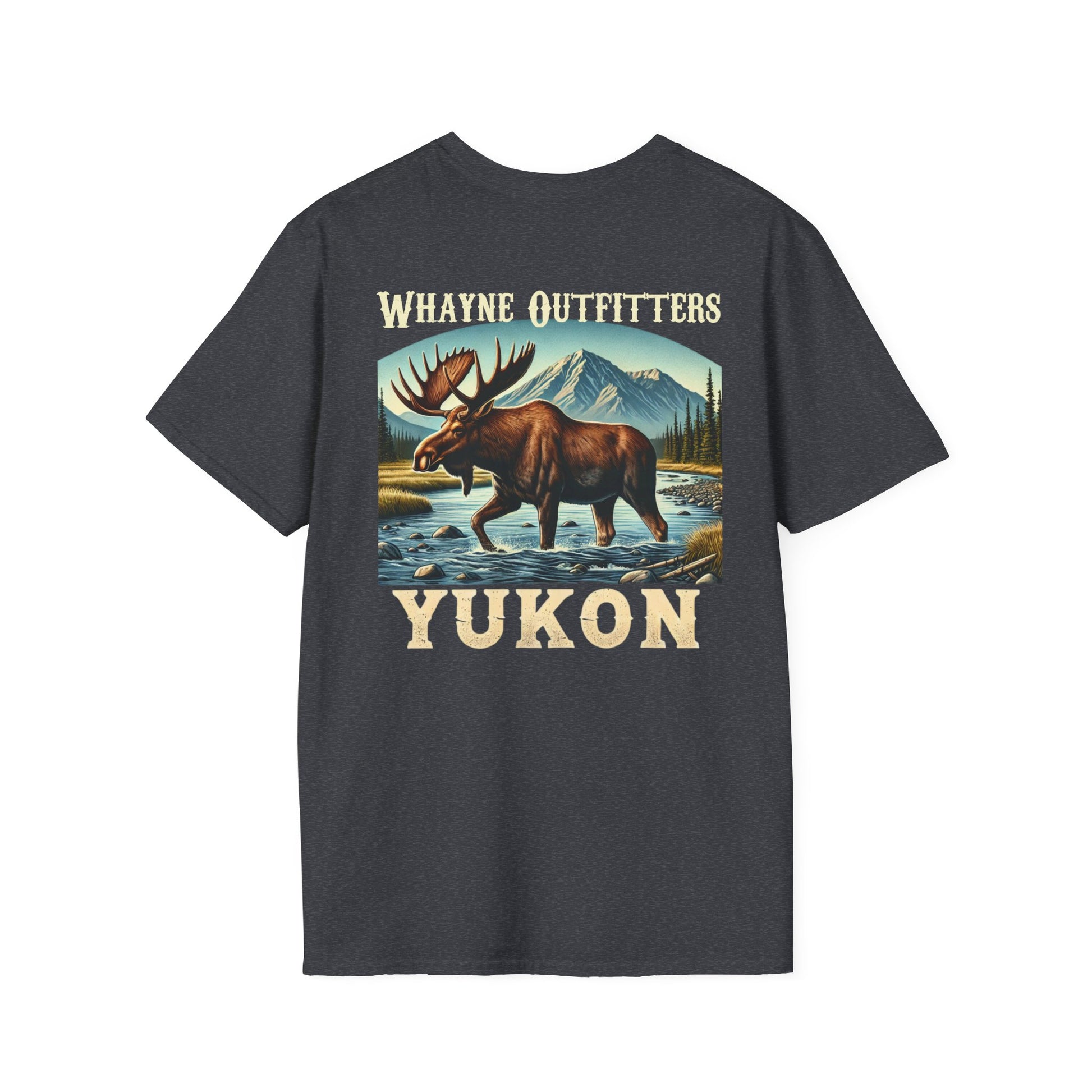 The wild has a ruler—and he walks on four hooves. The Northern King tee features a powerful bull moose crossing an icy Yukon river, set against towering pines and snow-capped peaks. With vintage-style “Whayne Outfitters” branding and bold “YUKON” lettering, this design pays tribute to the majesty of the North’s most iconic giant.